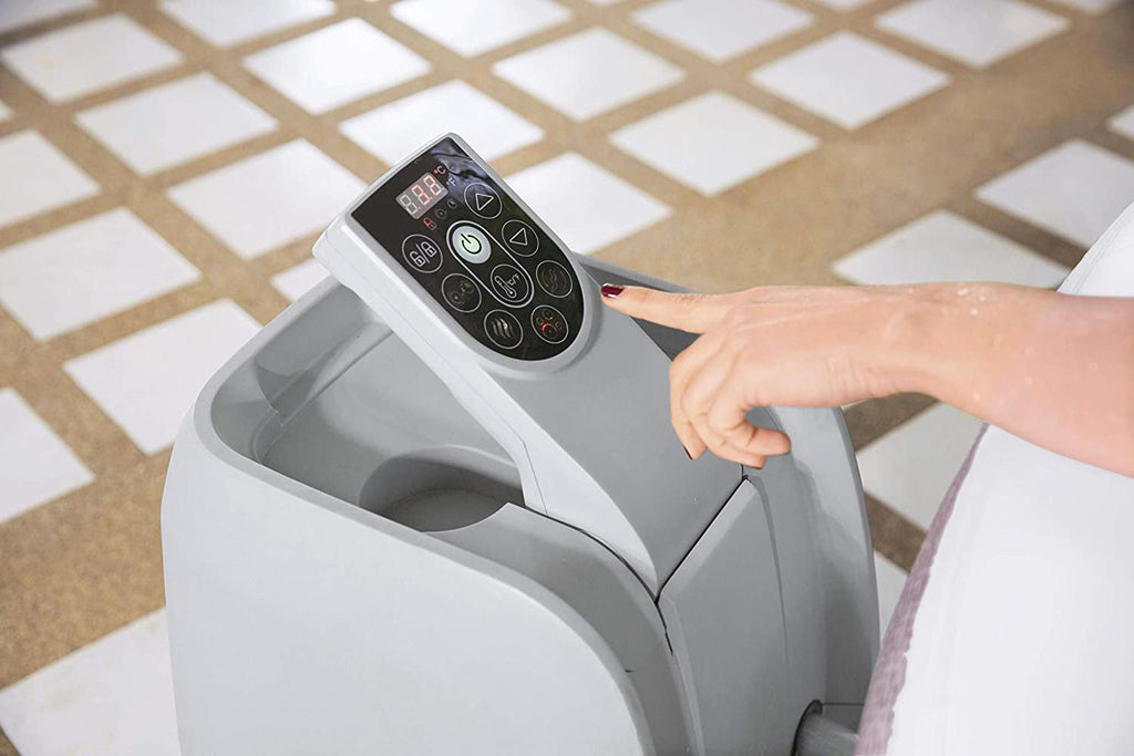 - Die Einheit mit digitalem Bedienfeld und Spa-Pumpe mit eingebautem Filtersystem umfasst Getränkehalter und kann auch vom Inneren des Spas aus erreicht werden