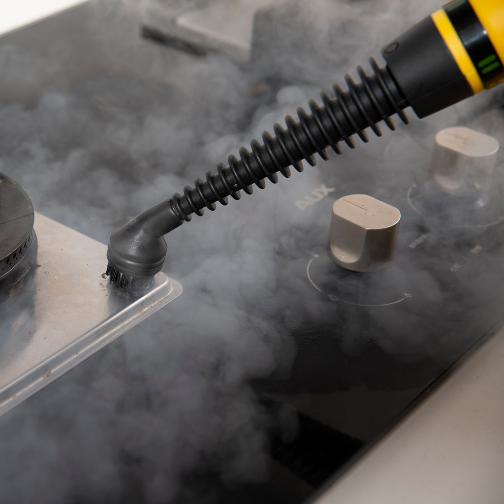 - Dampfreinigung, mit der Sie Fett, Schmutz, Bakterien und Flecken entfernen können