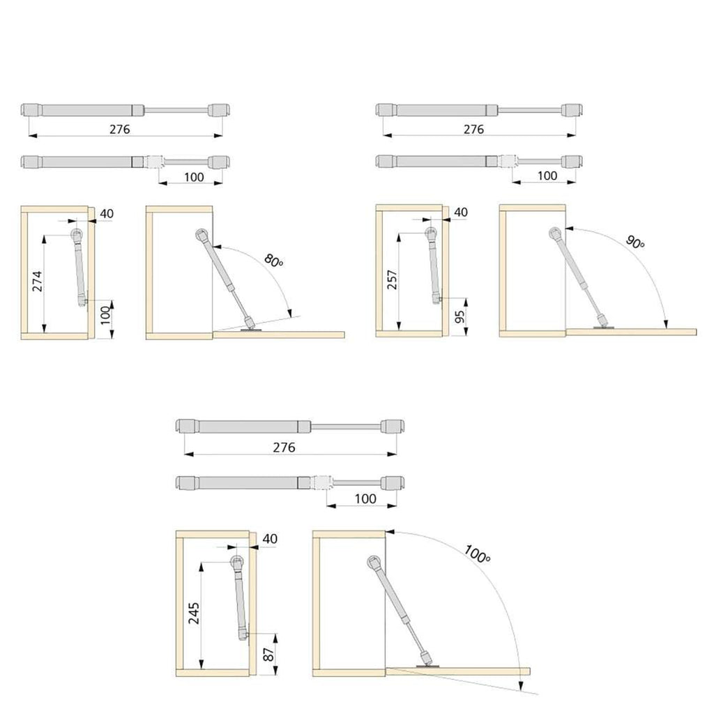Gaskolben für Klapptüren Kraft 12 Kg Hub 100 mm Metallic Grau 10 Stück Emuca