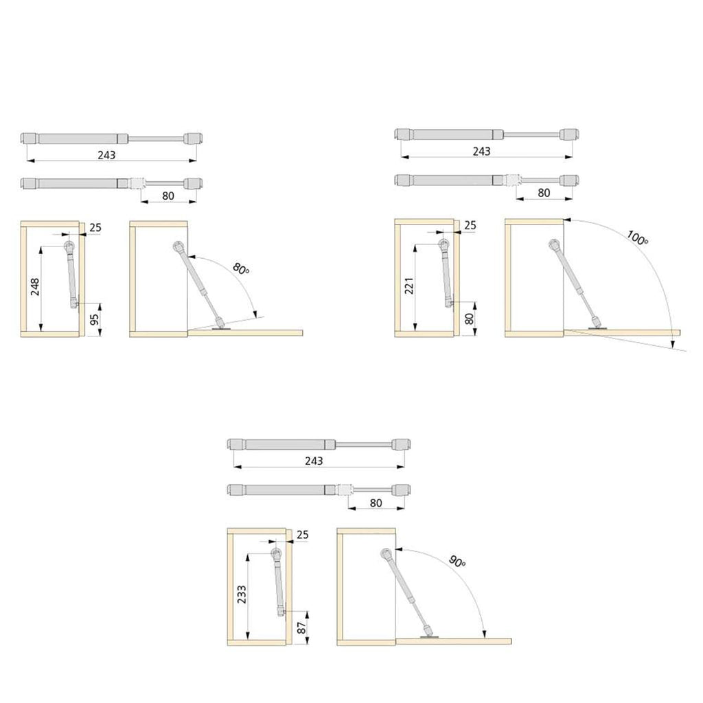 Gaskolben für Klapptüren Kraft 12 Kg Hub 80 mm Metallic Grau 10 Stück Emuca