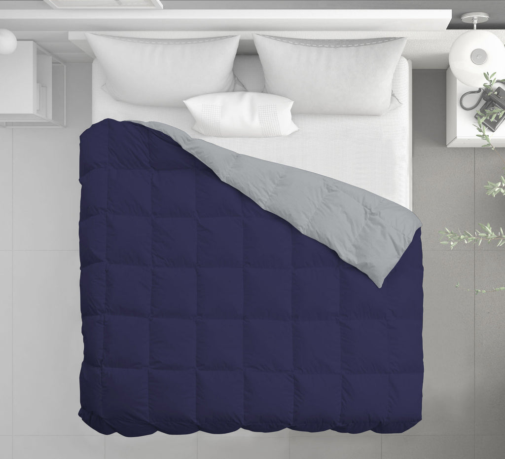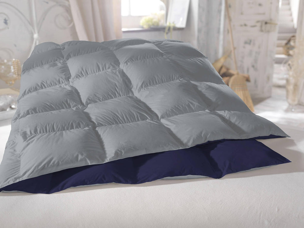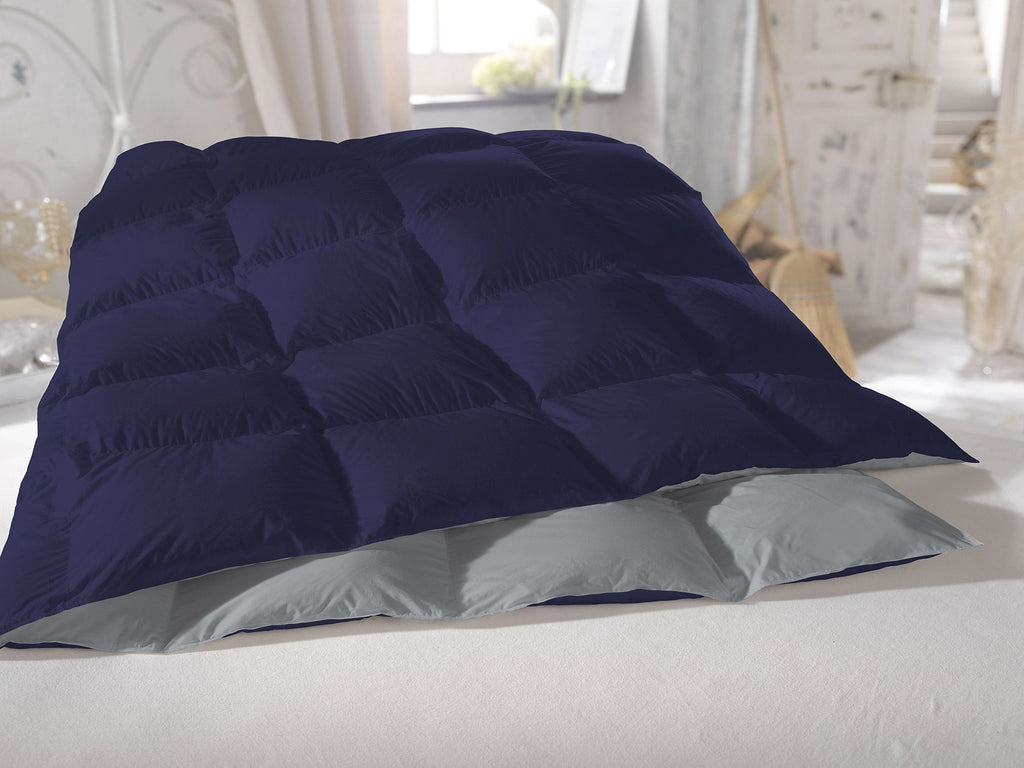 Bettdecke aus Entenfeder 350gr Doubleface Dunkelblau/Hellgrau