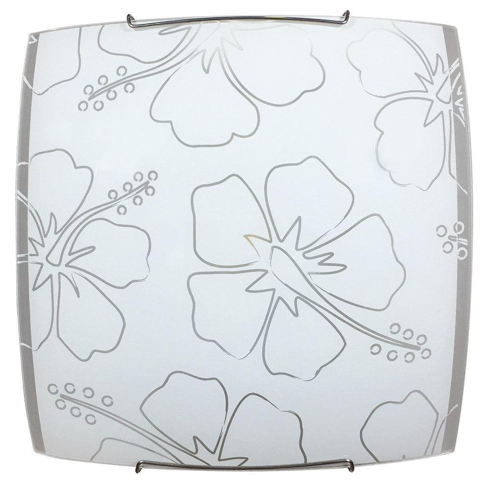 Deckenleuchte 1xE27 Weißer Rahmen Glasplatte Siebdruck Blume E-Energy Delia