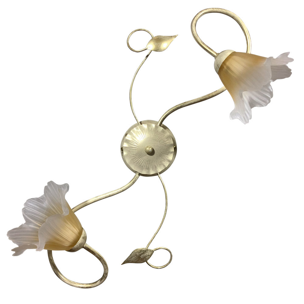 Deckenleuchte 2xE14 Gold Elfenbein Rahmen Bernstein Farbverlauf Satinglas E-Energy Melania