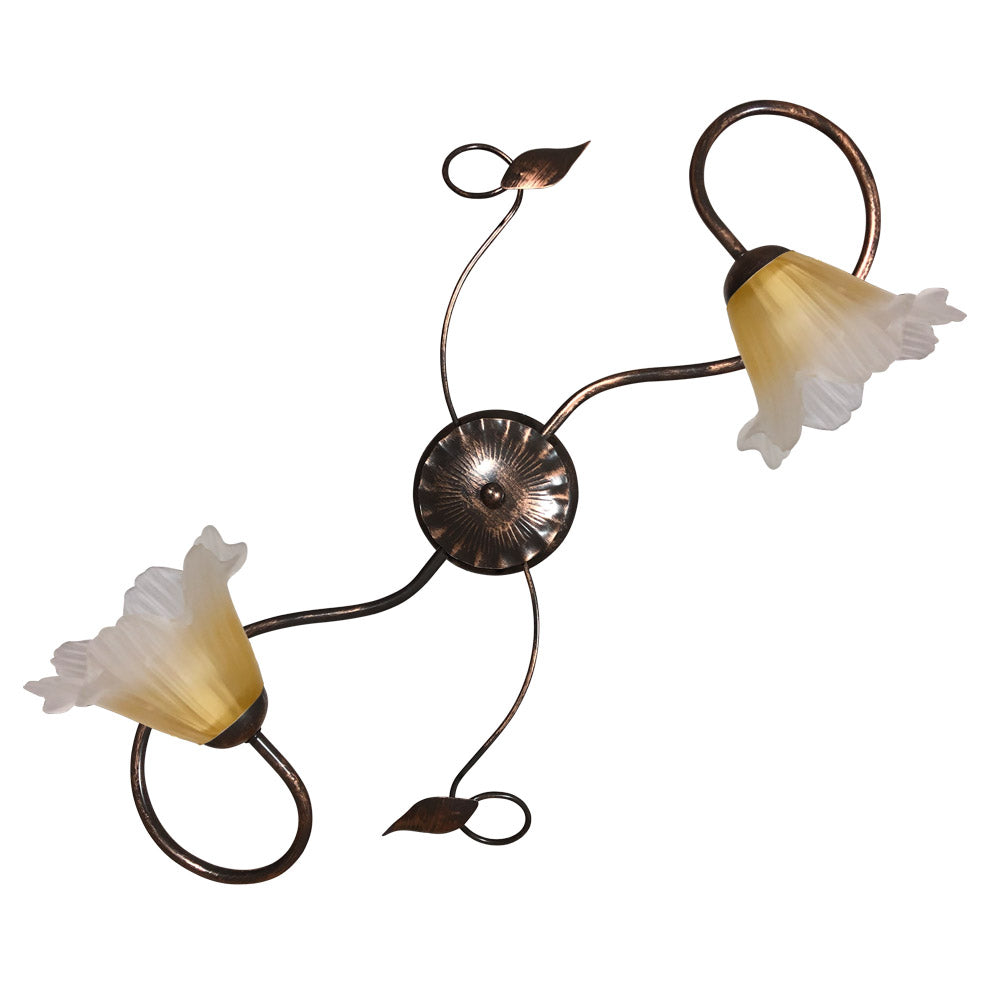 Deckenleuchte 2xE14 Kupfer Braun Gestell Bernsteinfarbenes Satinglas E-Energy Melania