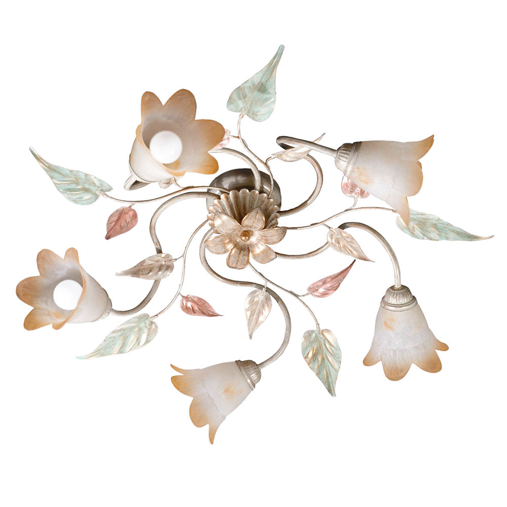 Deckenleuchte 5xE14 Antik Rahmen weiß schattiert Bernsteinglas E-Energy Giulia