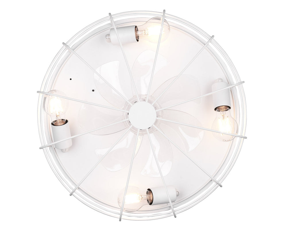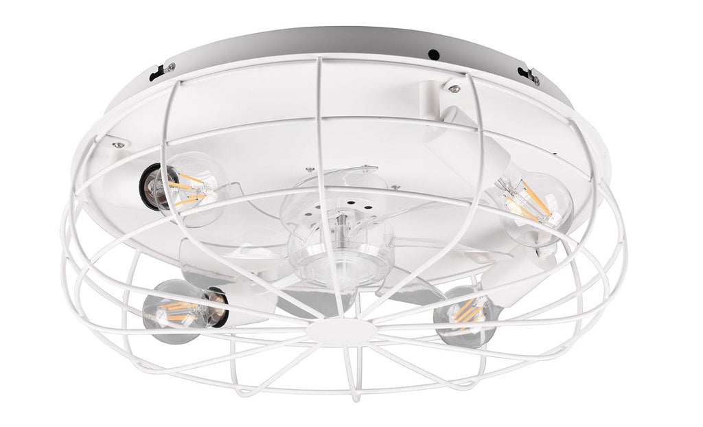 Trondheim Plafoniera con Ventilatore Gabbia Metallo Bianco Opaco con Telecomando Multifunzione Regolazione 3 Intensità e Timer D.50Cm