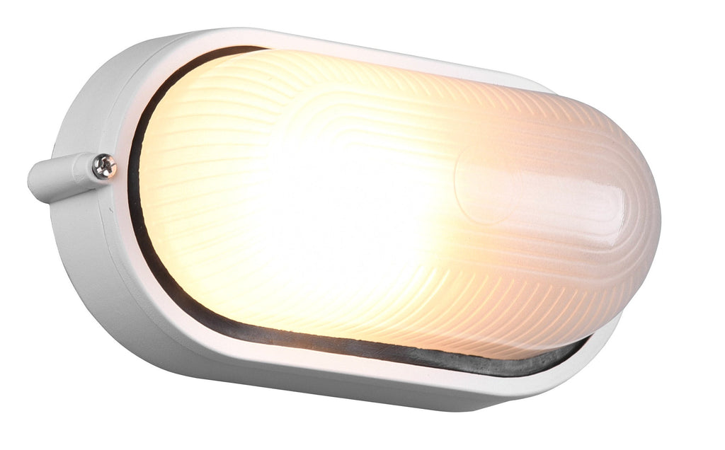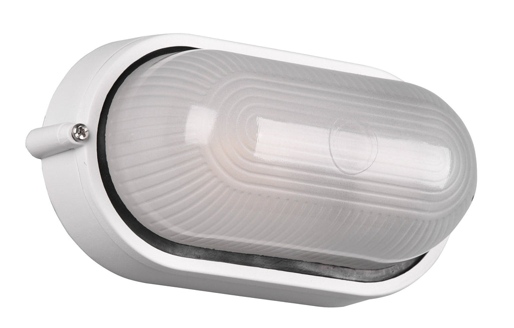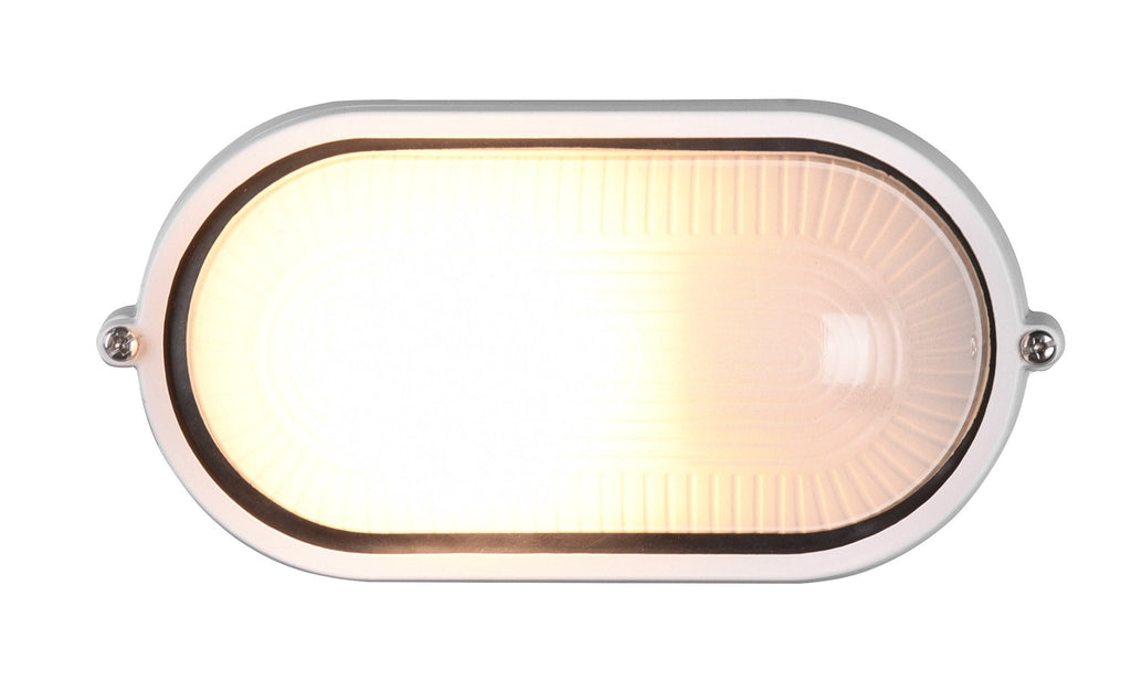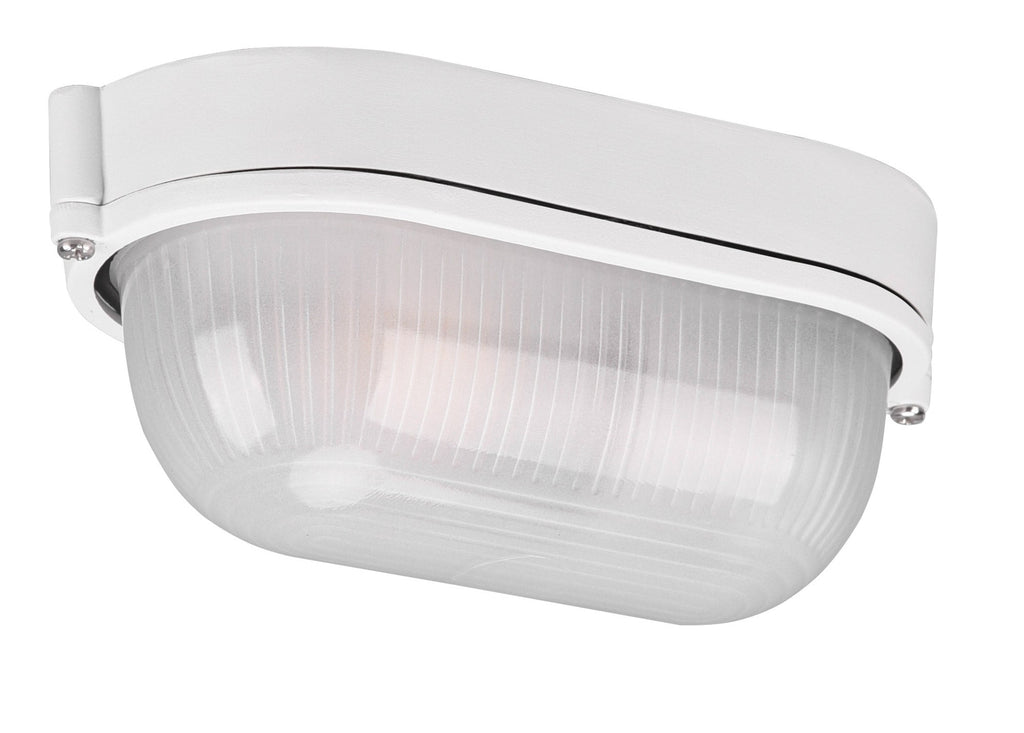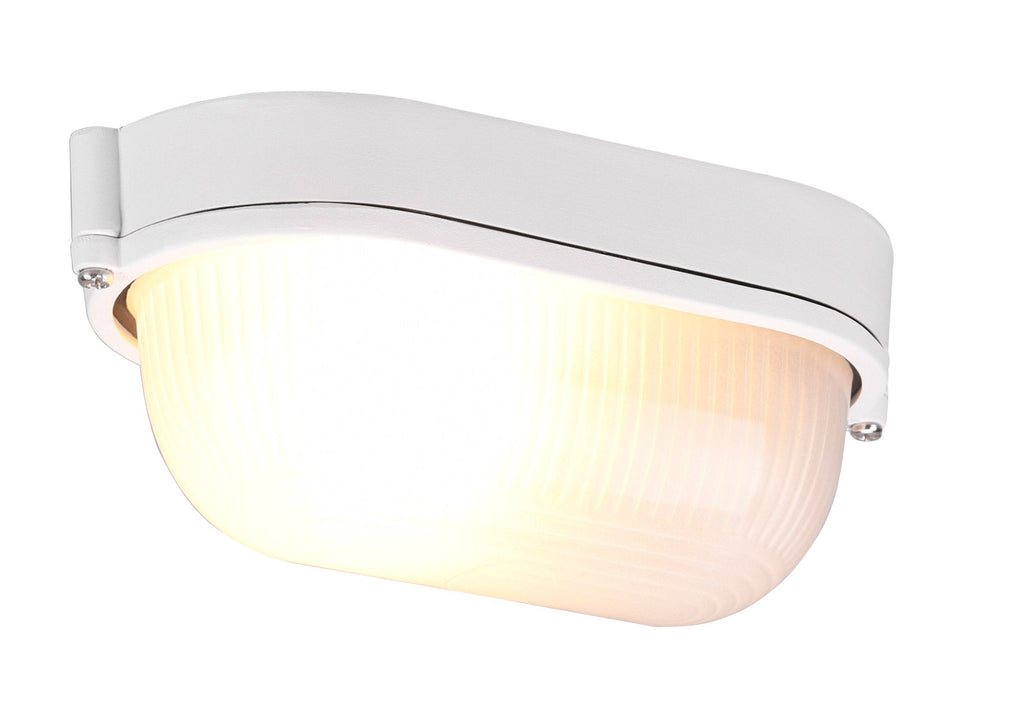 Alano Plafoniera Applique Da Esterno Ovale Fusione di Alluminio Bianca e Vetro Satinato L.21,3Cm Ip44