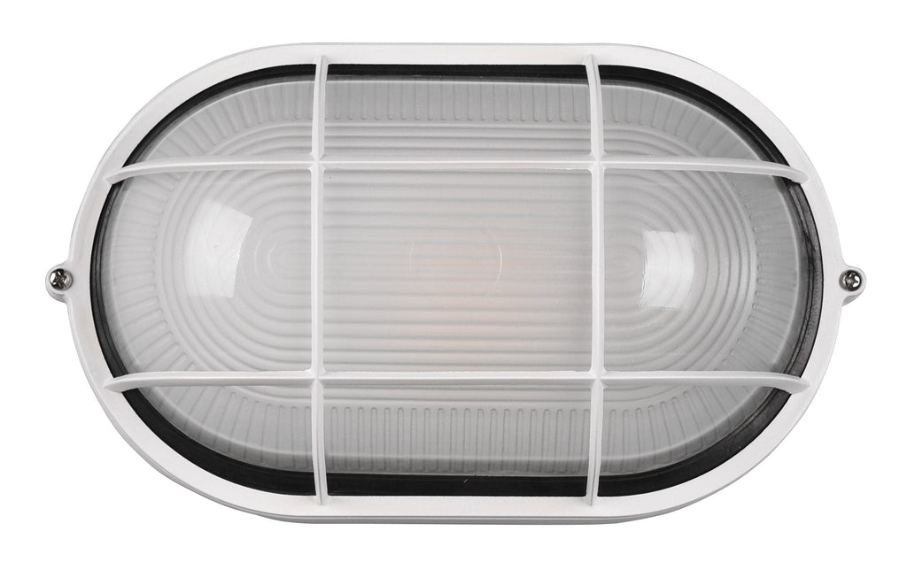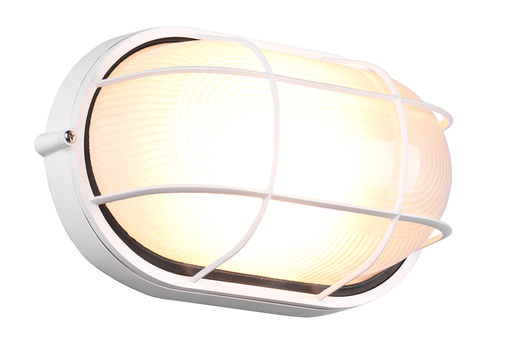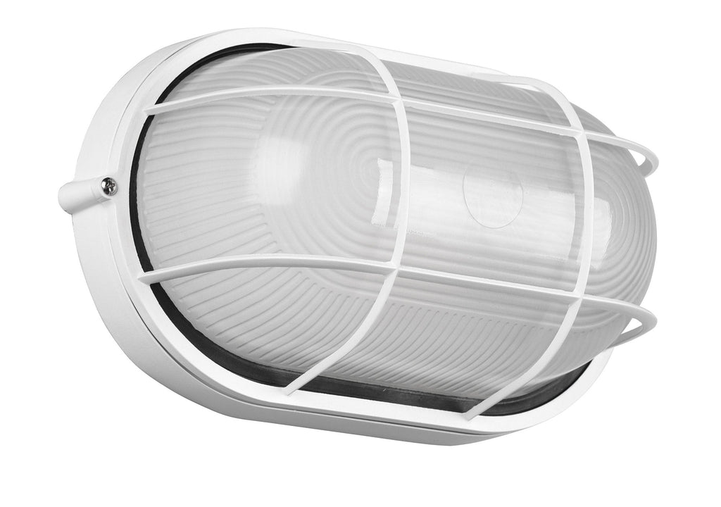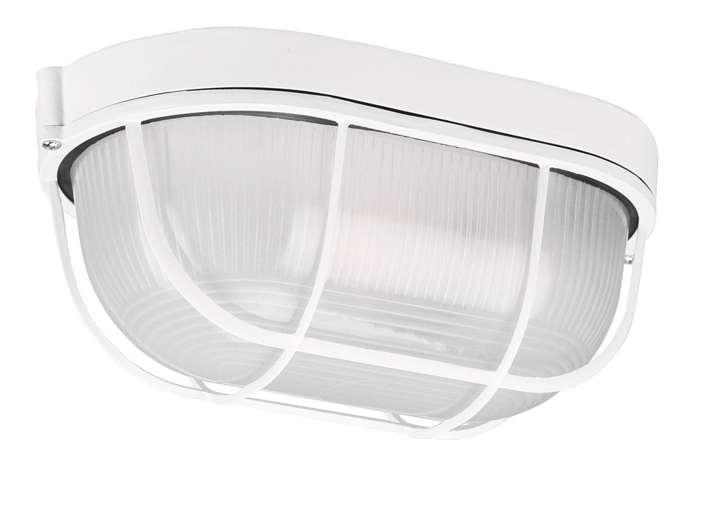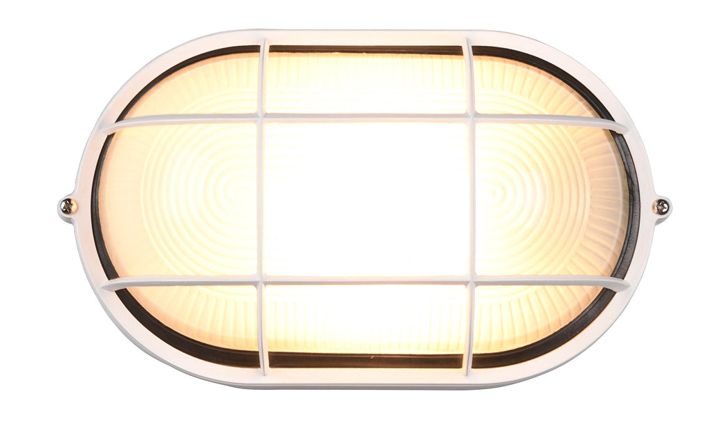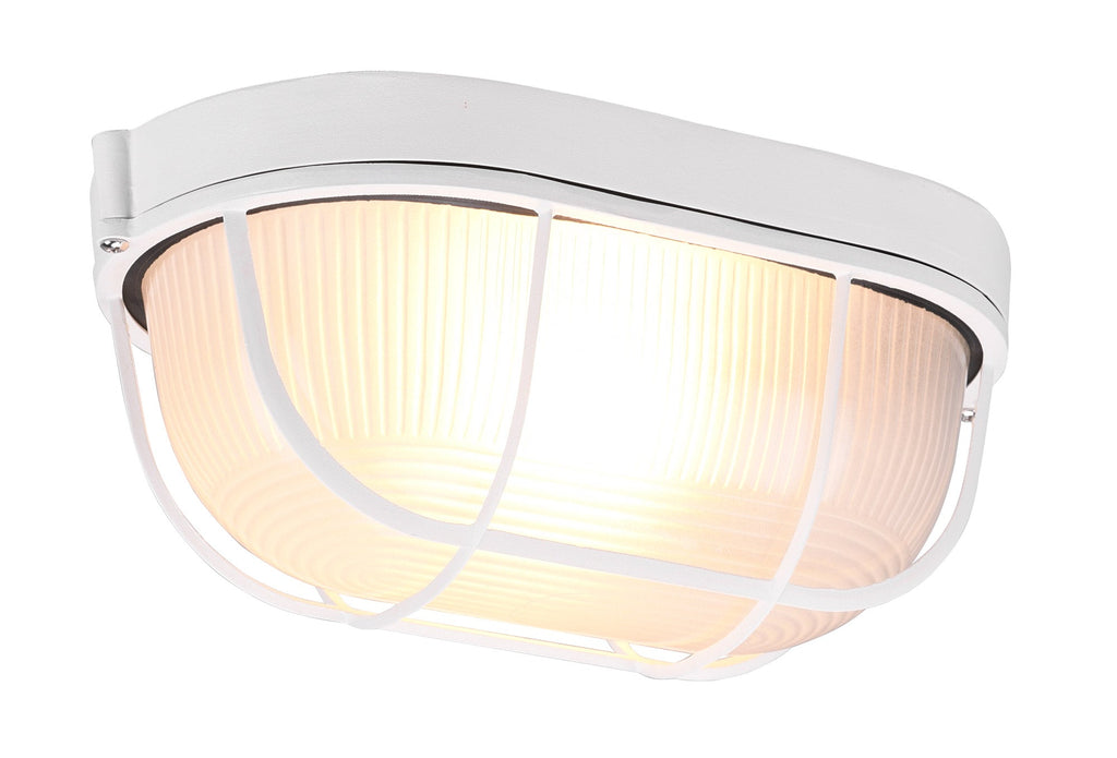Algi Plafoniera Applique Da Esterno Ovale Fusione di Alluminio Bianca con Griglia e Vetro Satinato L.28,3Cm Ip44