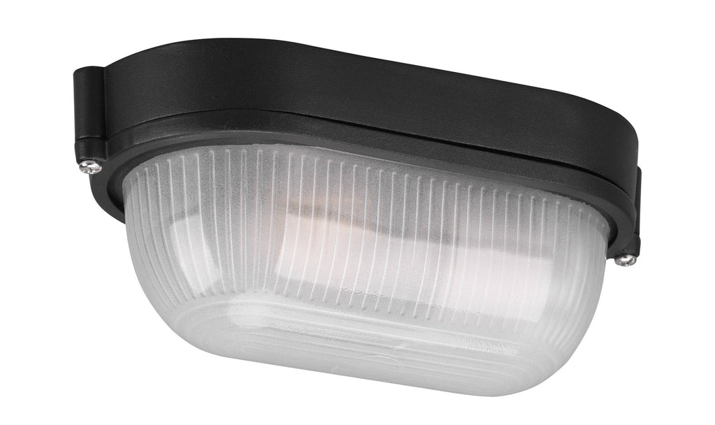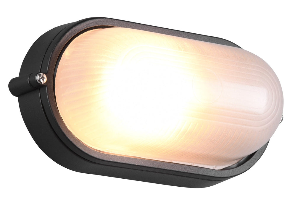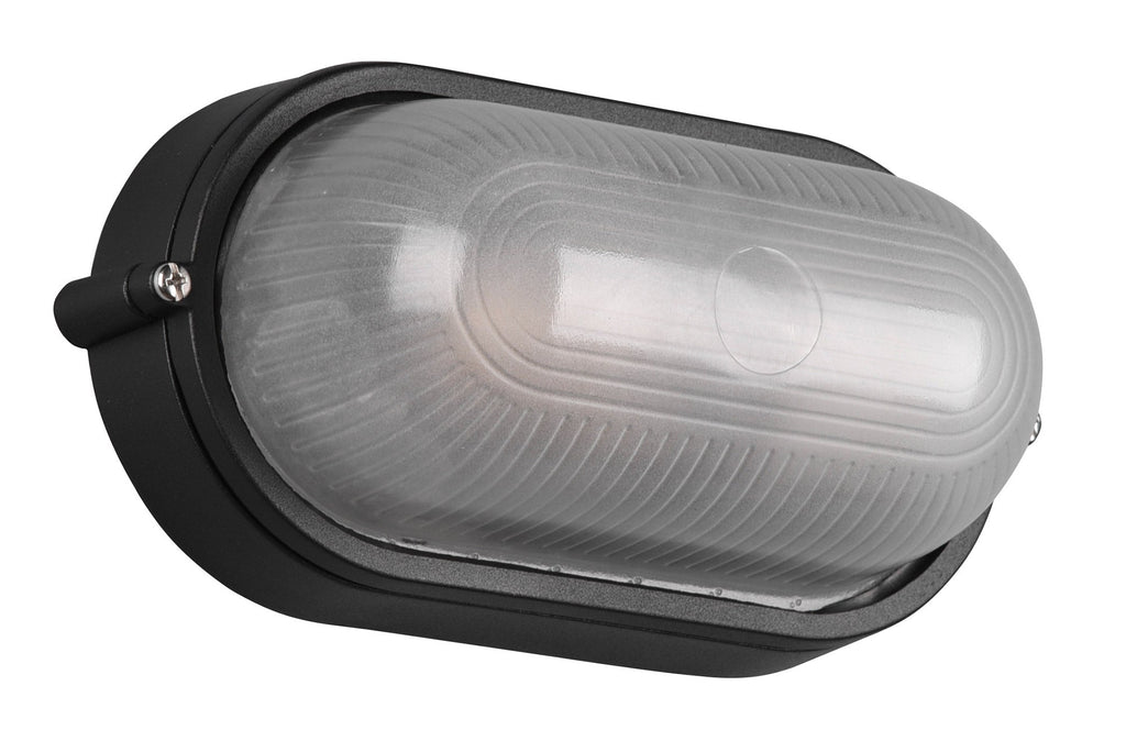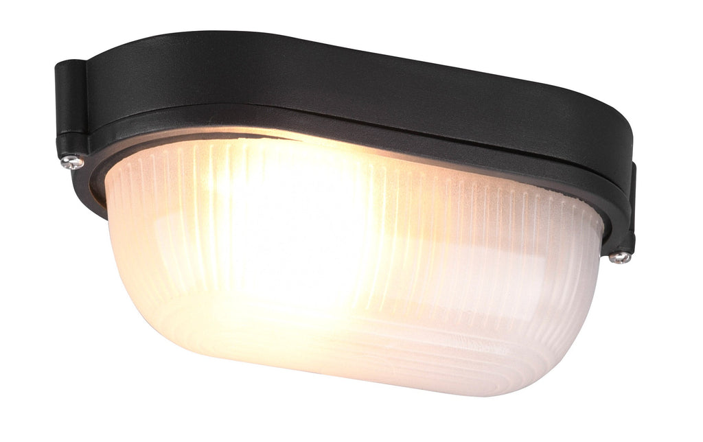 Alano Plafoniera Applique Da Esterno Ovale Fusione di Alluminio Nera e Vetro Satinato L.21,3Cm Ip44