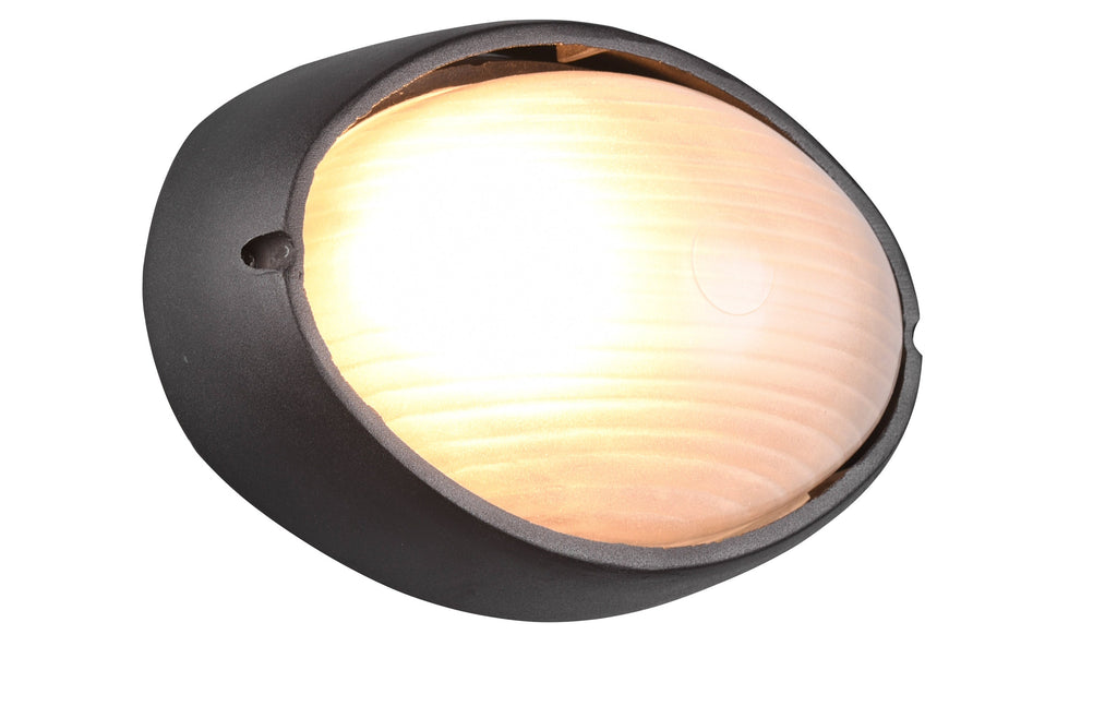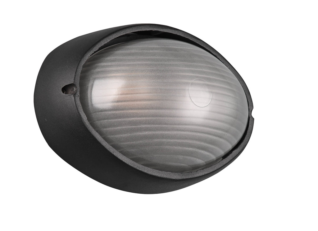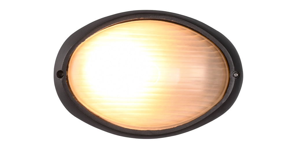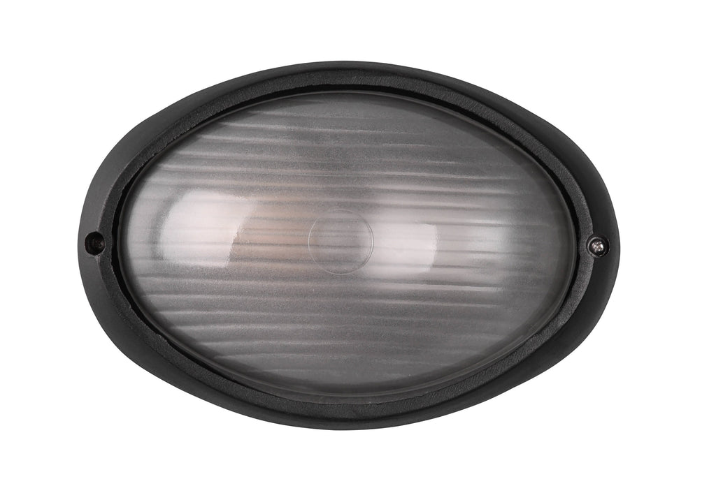 Temo Plafoniera Applique Da Esterno Ovale Fusione di Alluminio Nera e Vetro Satinato L.21,3Cm Ip44