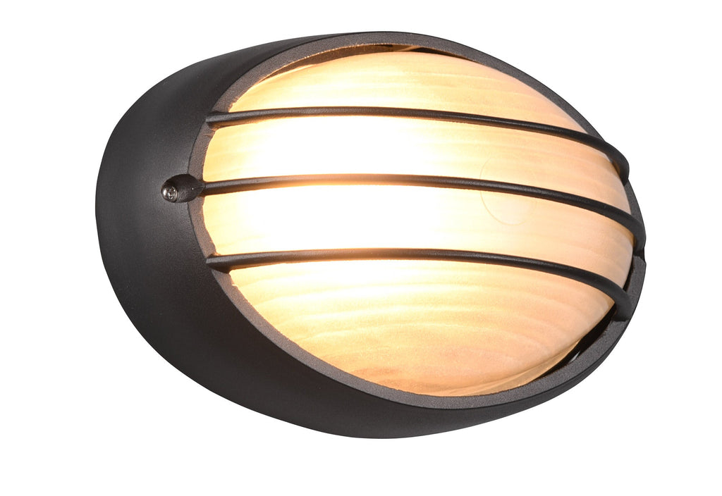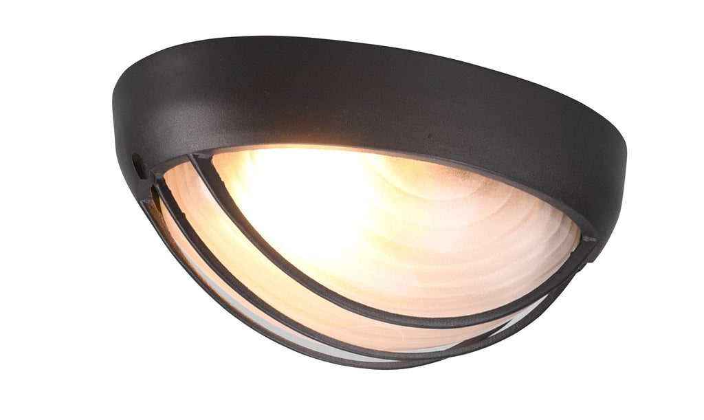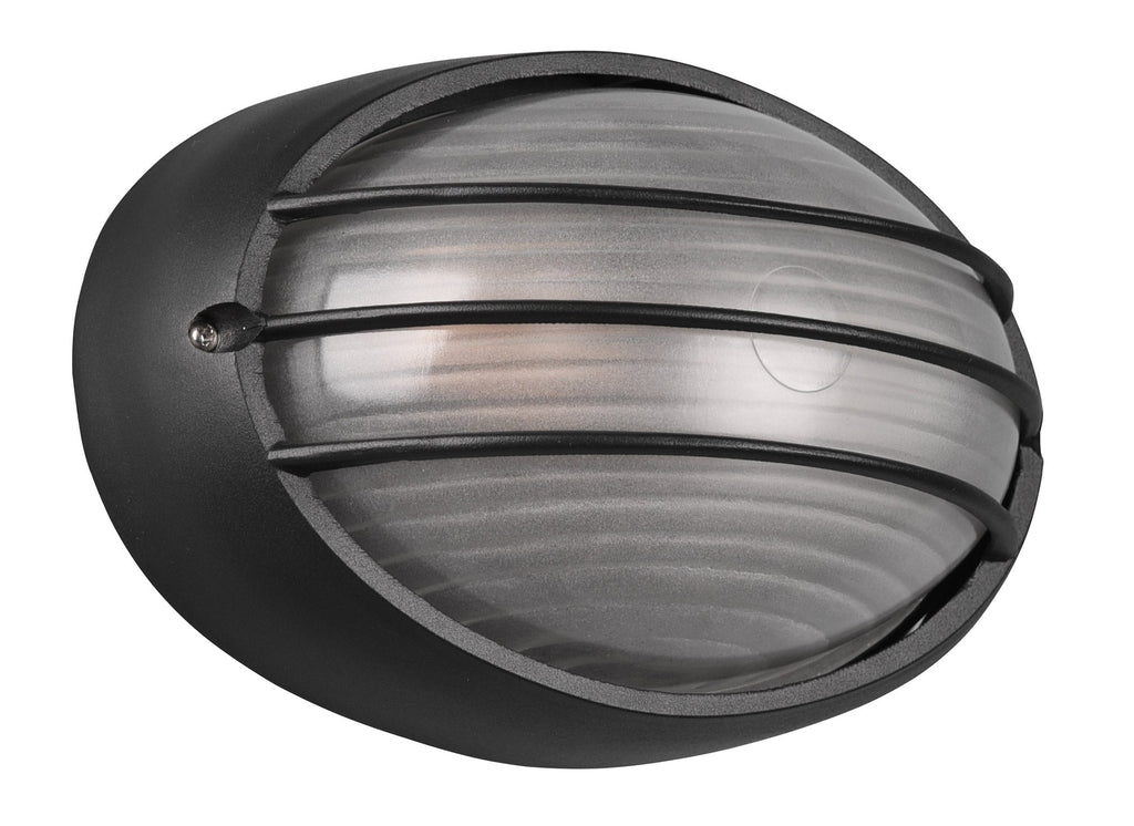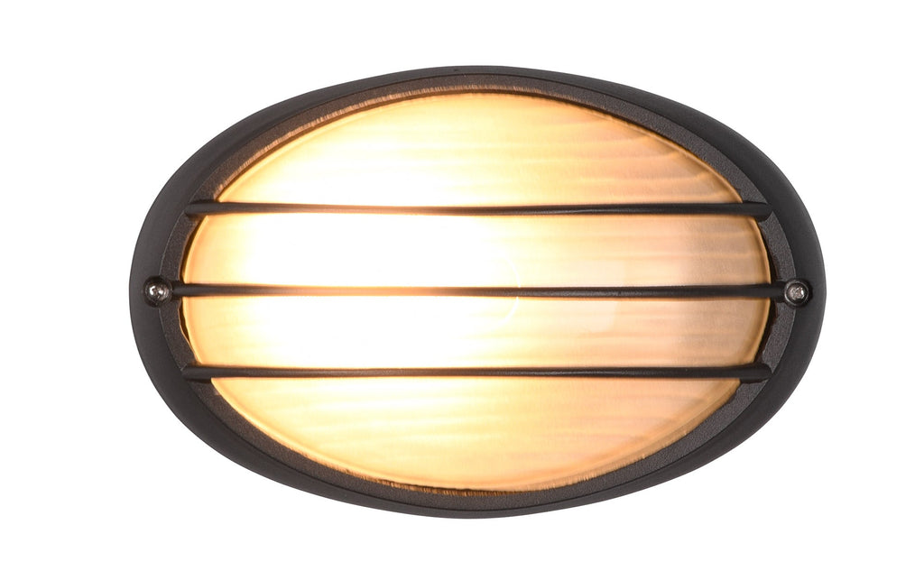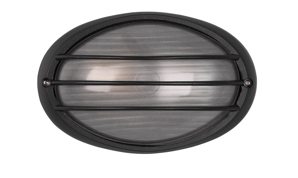 Tirso Plafoniera Applique Da Esterno Ovale Fusione di Alluminio Nera con Griglia e Vetro Satinato L.21,3Cm Ip44