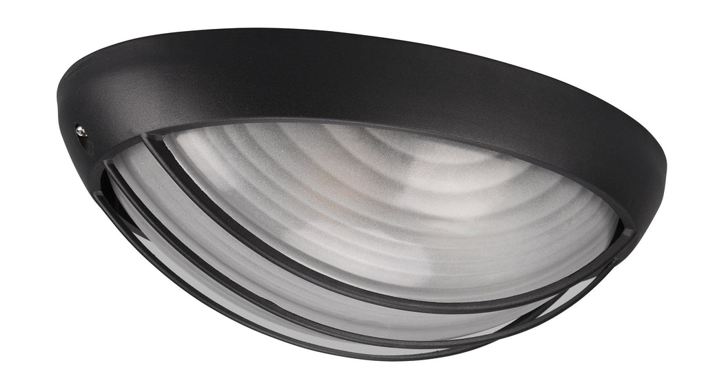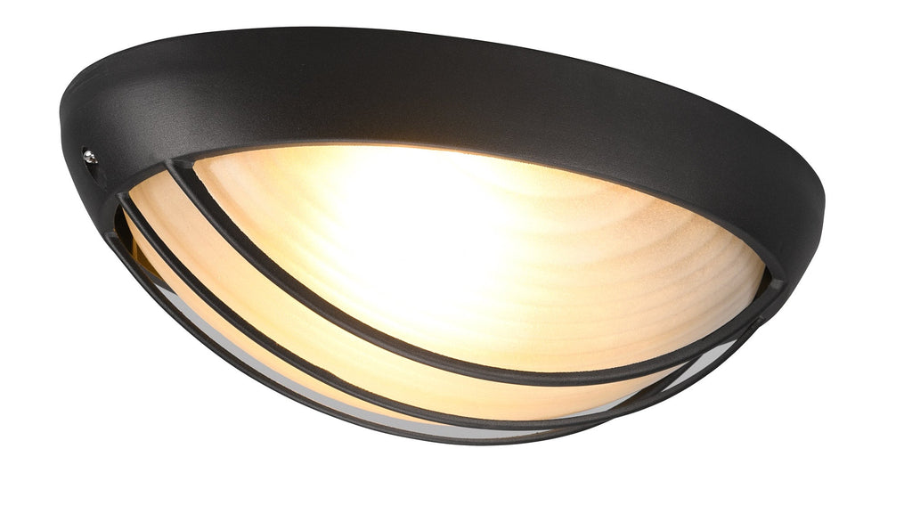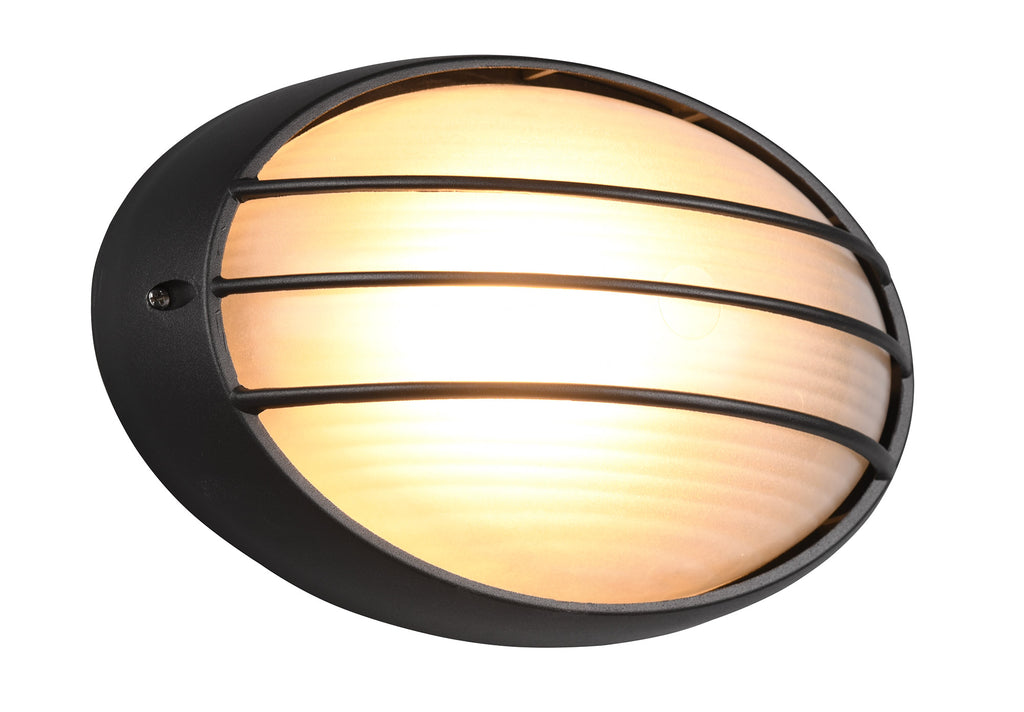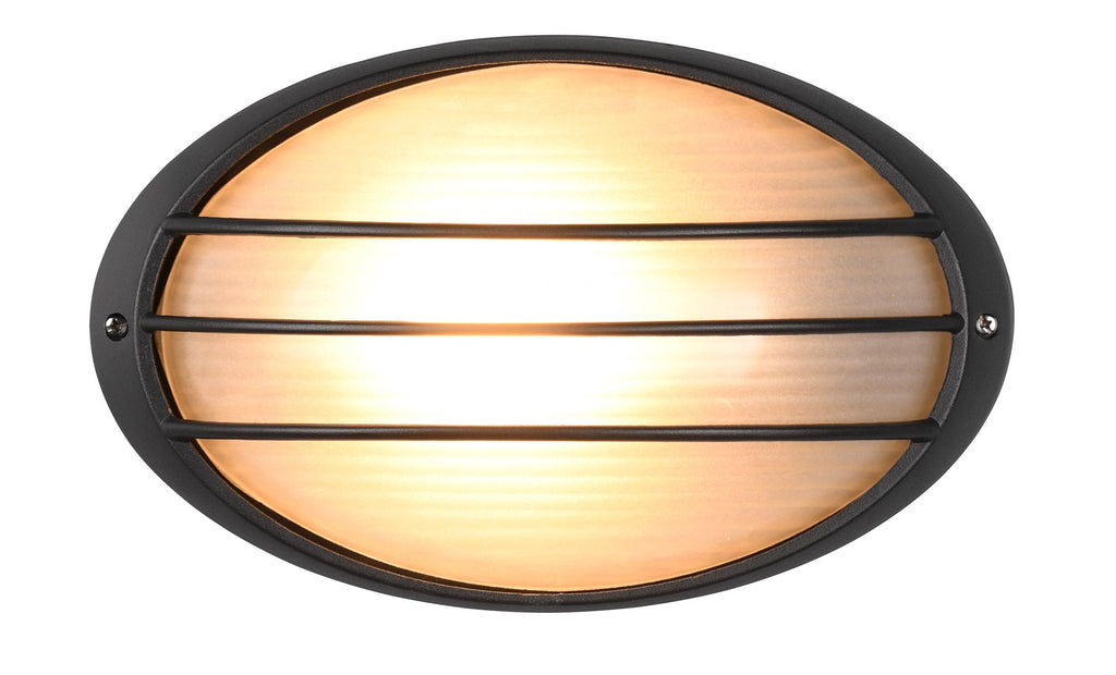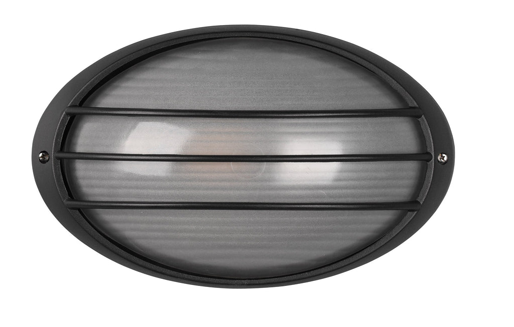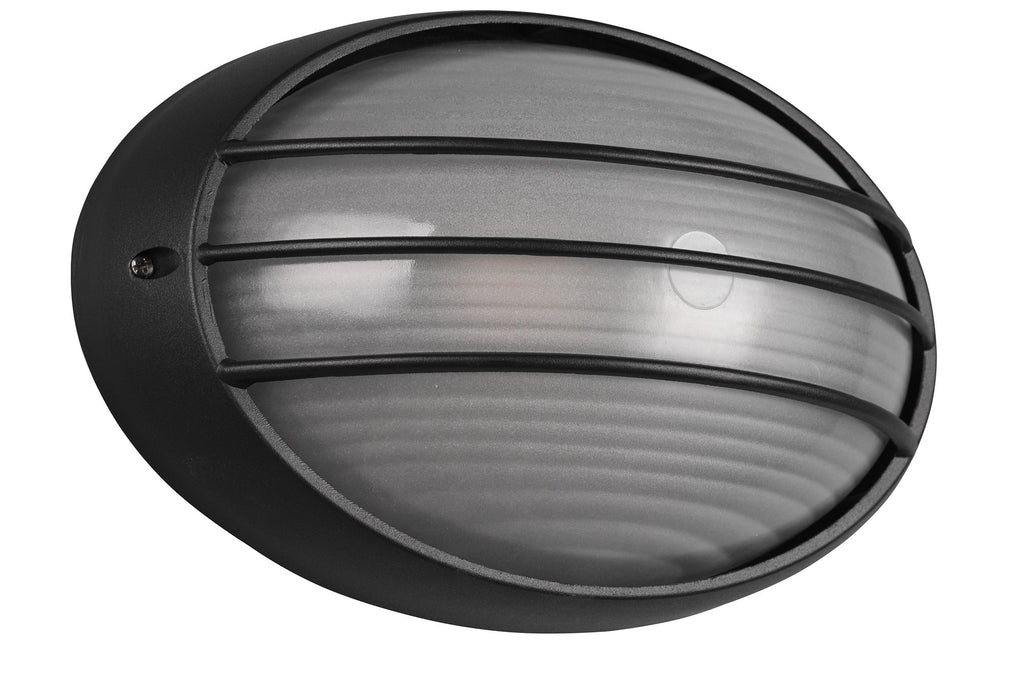 Tirso Plafoniera Applique Da Esterno Ovale Fusione di Alluminio Nera con Griglia e Vetro Satinato L.32Cm Ip44