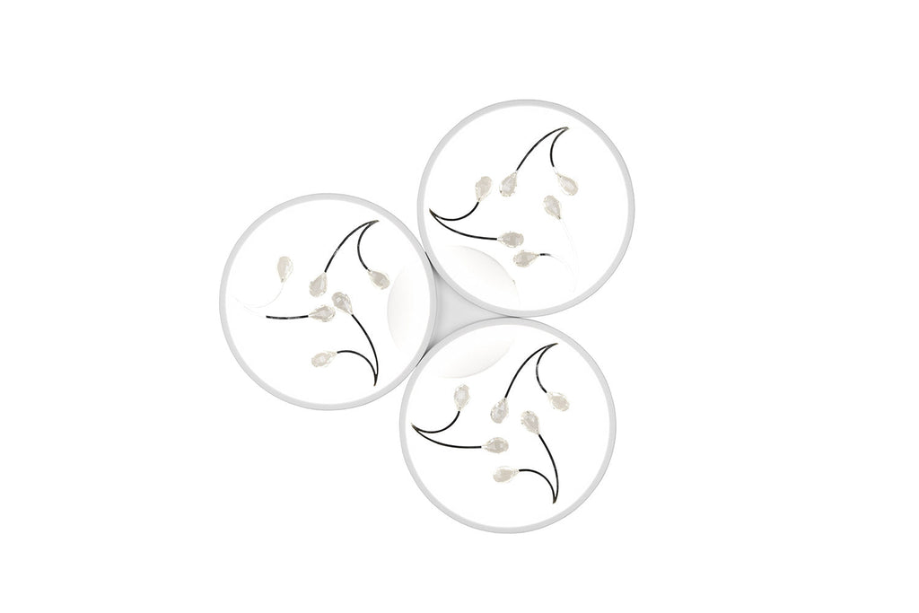 Groovy Plafoniera Led 3 Cerchi con Decori Gemme Trasparenti Bianca con Funzione di Regolazione Intensità con Normale Interruttore A Parete D. 62Cm