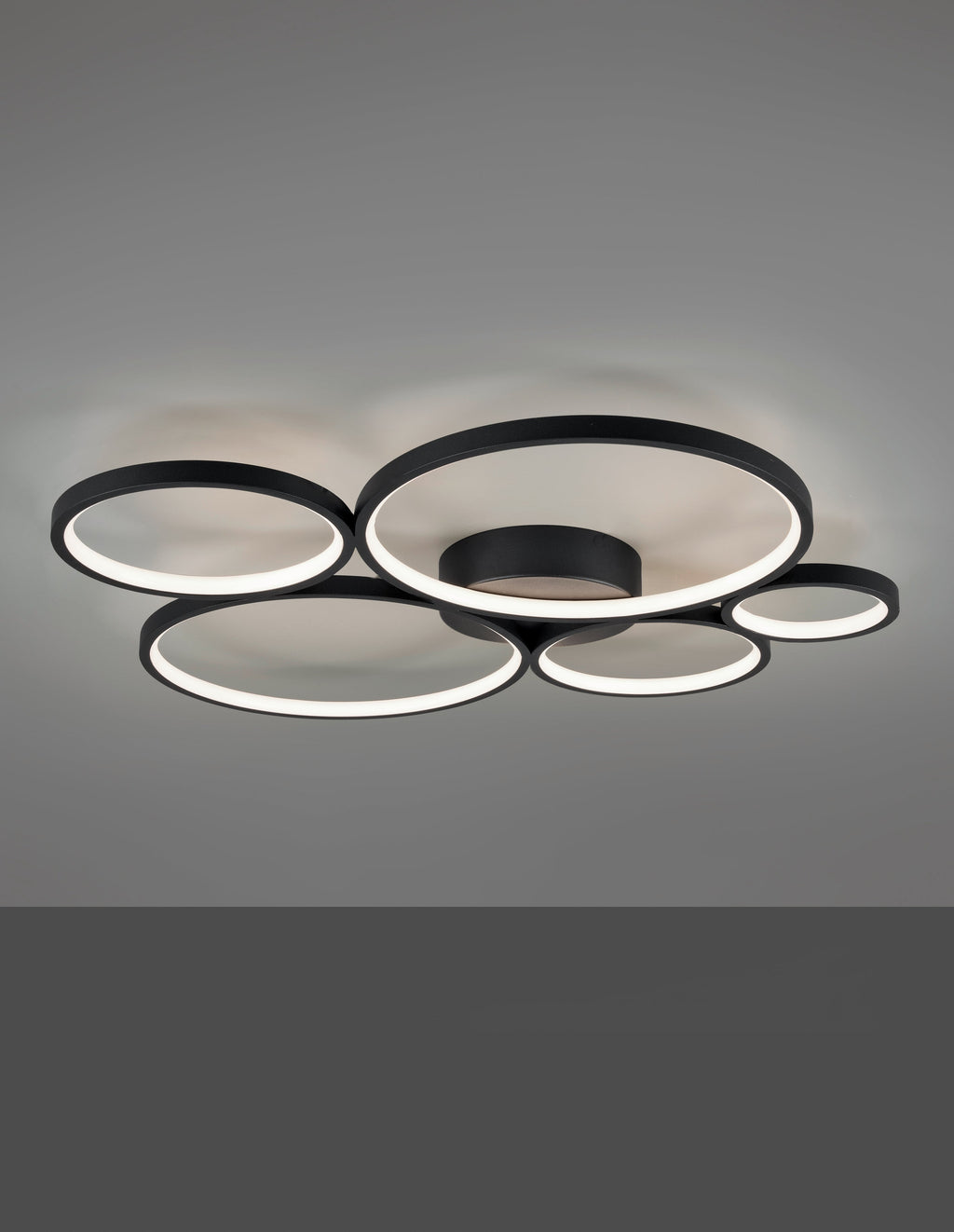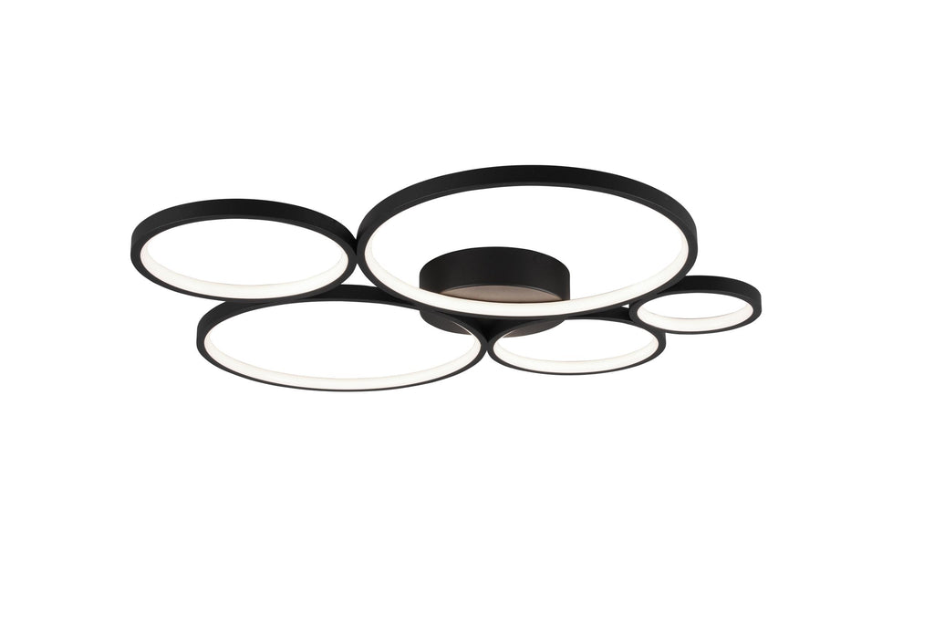 Rondo LED-Deckenleuchte 5 Kreise Mattschwarzes Metall mit Intensitätsvariation mit Wandschalter L. 59Cm