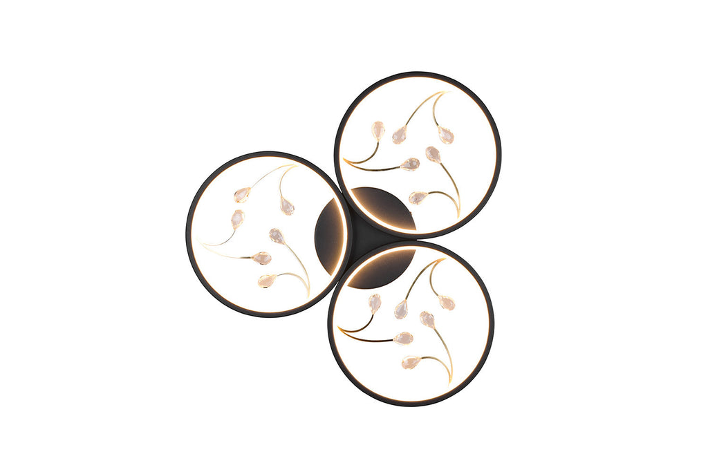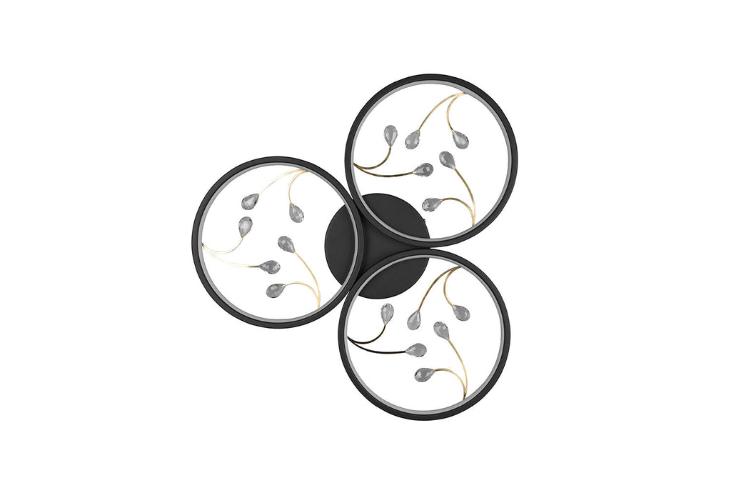 Groovy Plafoniera Led 3 Cerchi con Decori Gemme Trasparenti Nera con Funzione di Regolazione Intensità con Normale Interruttore A Parete D. 62Cm