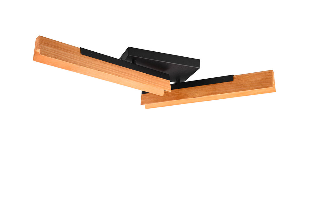 Kerala Plafoniera Led Orientabile Doppio Diffusore Legno Naturale e Metallo Nero Dimmerabile con Interruttore L. 83Cm