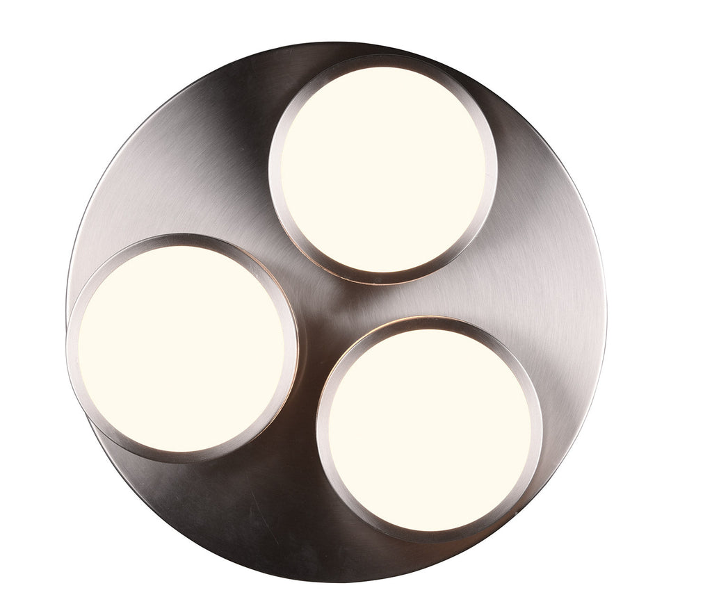 Franklin Plafoniera Led 3 Diffusori Circolari Acciaio Regolazione Intensità con Interruttore A Parete D. 35Cm