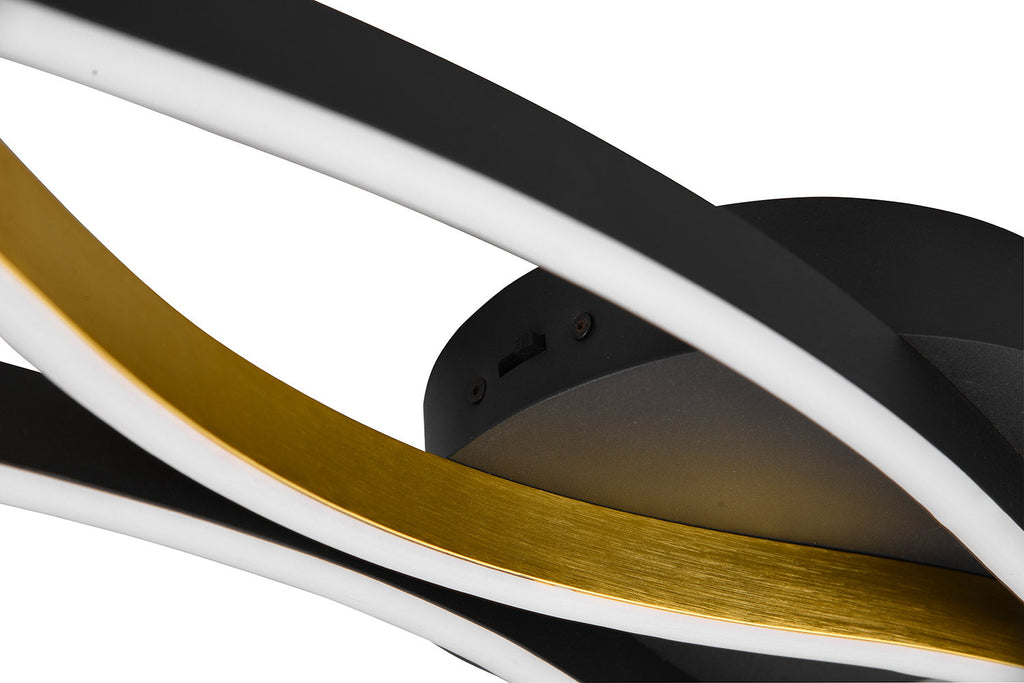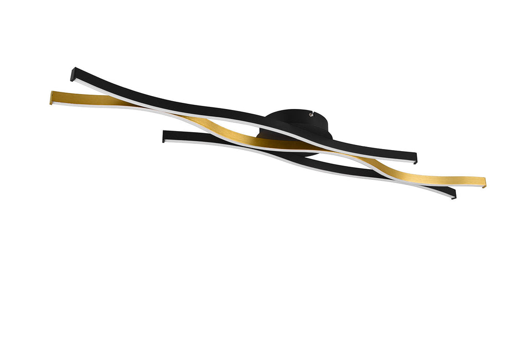Blaze Plafoniera Led Ondulata Metallo Ottone e Nero con Regolazione Intensità e Temperatura di Colore Della Luce con Interruttore L. 108Cm