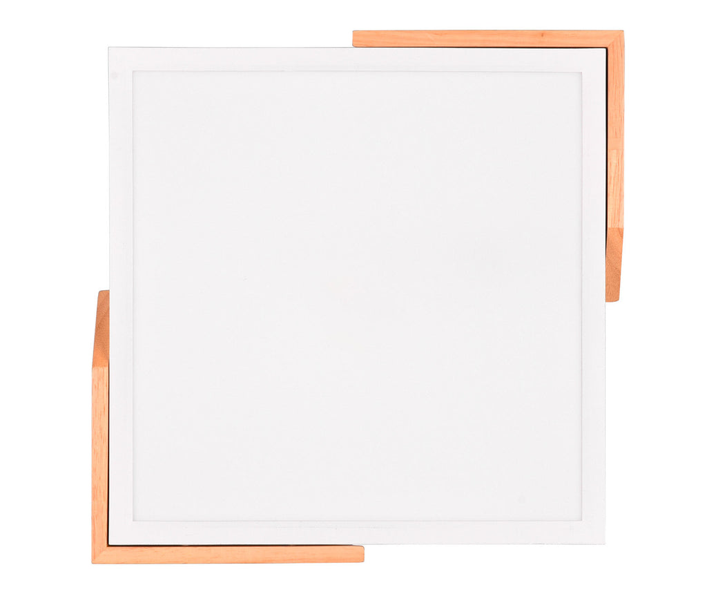 Meta Plafoniera Led Quadrata Bordo Bianco e Legno Naturale con Funzione di Regolazione Intensità con Normale Interruttore A Parete 31,5Cm X 31,5Cm