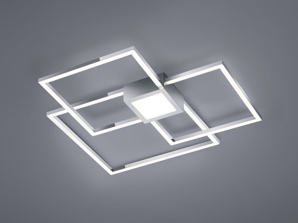 Hydra Plafoniera Led Cromo Triplo Quadrato+Luce Centrale Dimmerabile con Interr. L. 65X65Cm