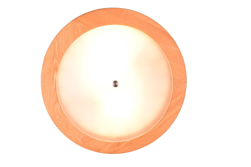 Pali Plafoniera Legno Naturale e Vetro Bianco D. 32Cm