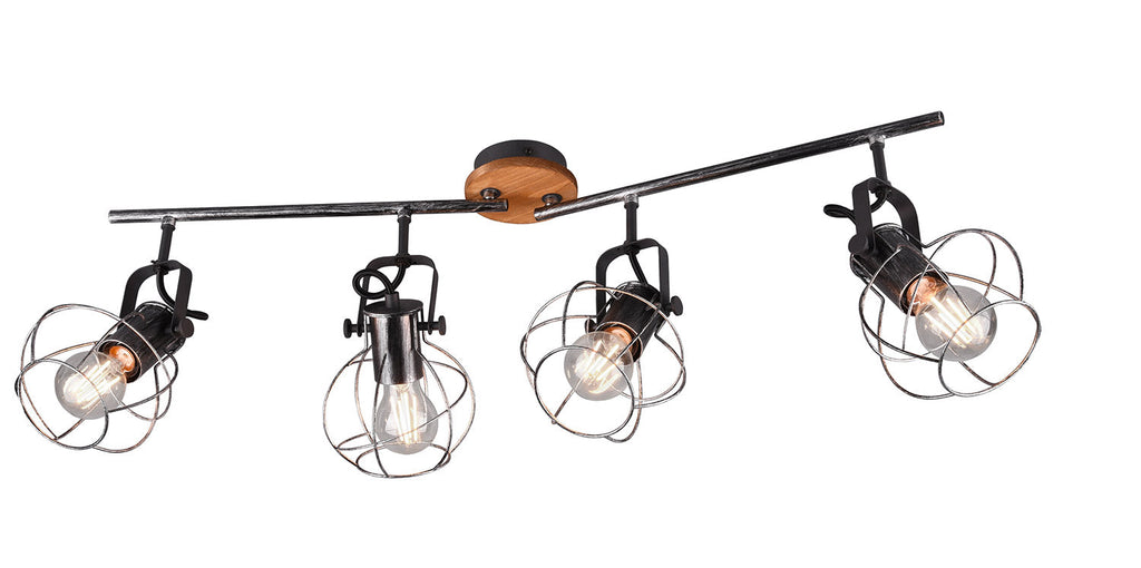Madras Barra 4 Spots Legno e Metallo Effetto Argento Anticato L.80Cm