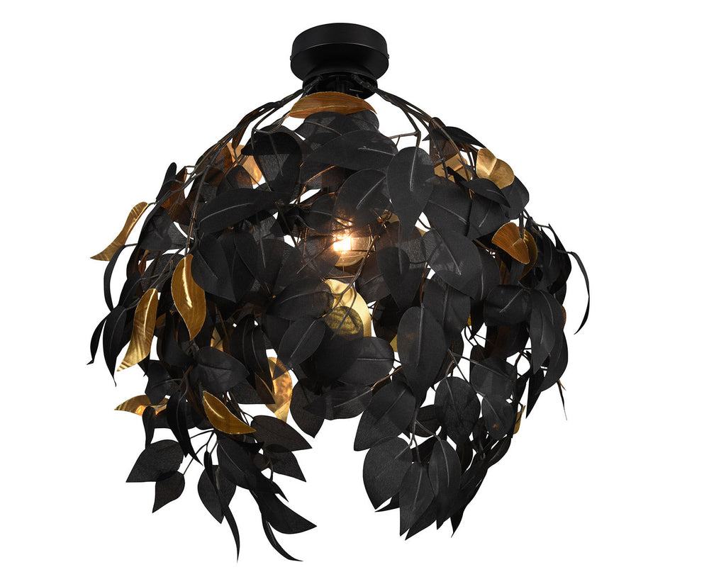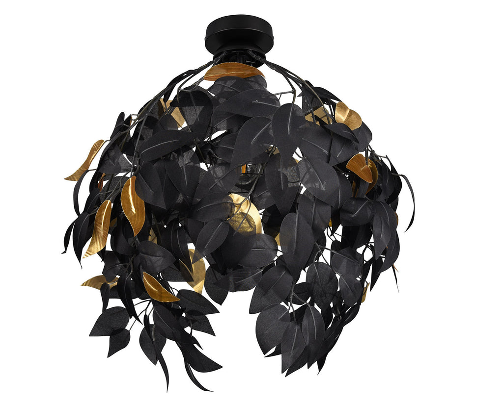 Leavy Plafoniera Foglie Lavabili Nero e Oro D. 38Cm