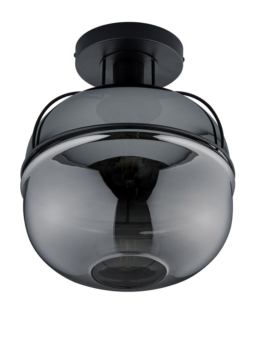Lorena Plafoniera Metallo Nero Vetro Fume' Cromato D. 30Cm