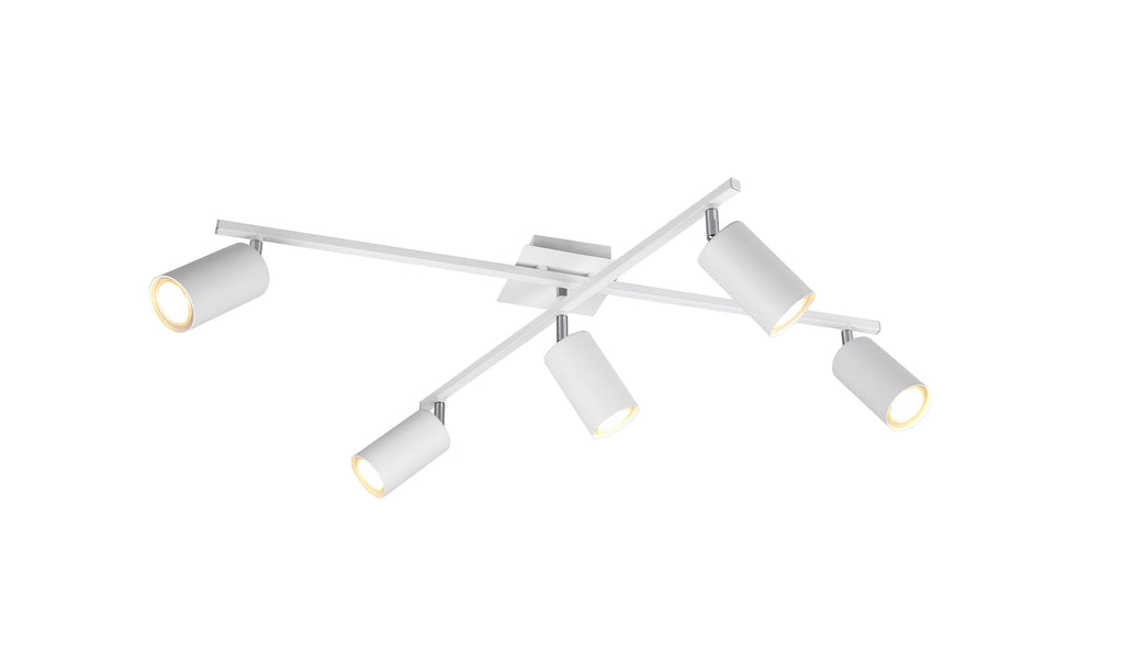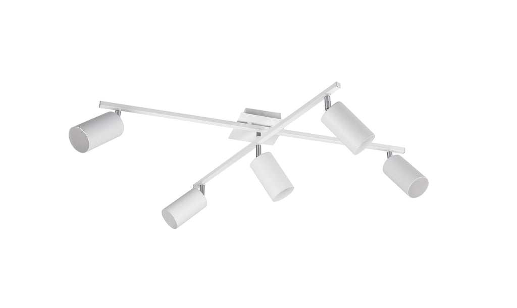 Marley Deckenleuchte 2 verstellbare Stangen 5 Spots Weißer Metallzylinder L. 77,5Cm