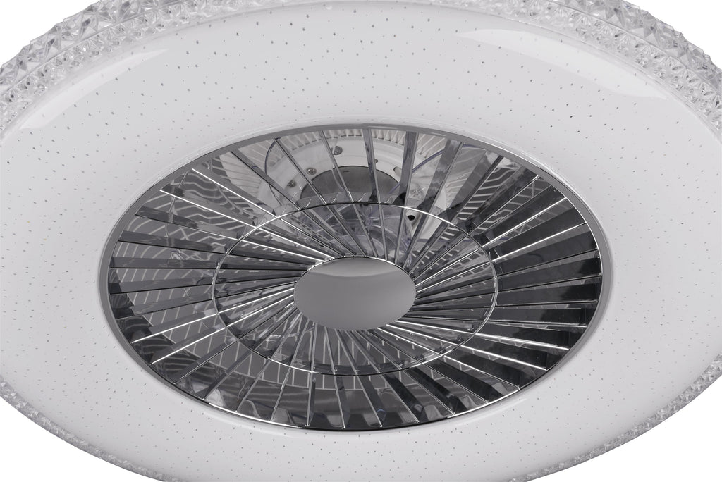 Harstad Ventilator und LED-Deckenleuchte Satin-Diffusor und Kristalleffekt mit Multifunktions-Fernbedienung Intensitäts- und Farbtemperatureinstellung D.60Cm