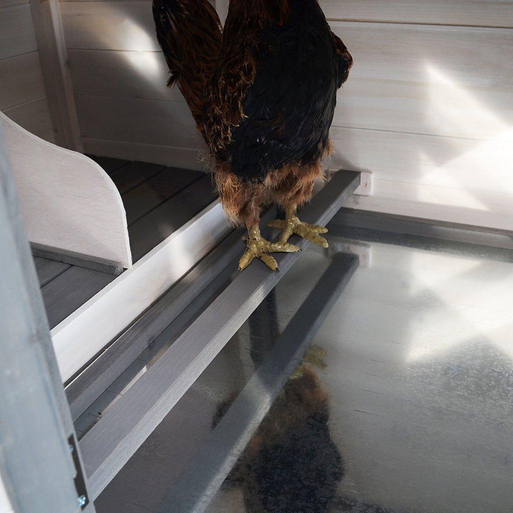 - Die Rampe ermöglicht es den Hühnern, den erhöhten Bereich leicht zu betreten
