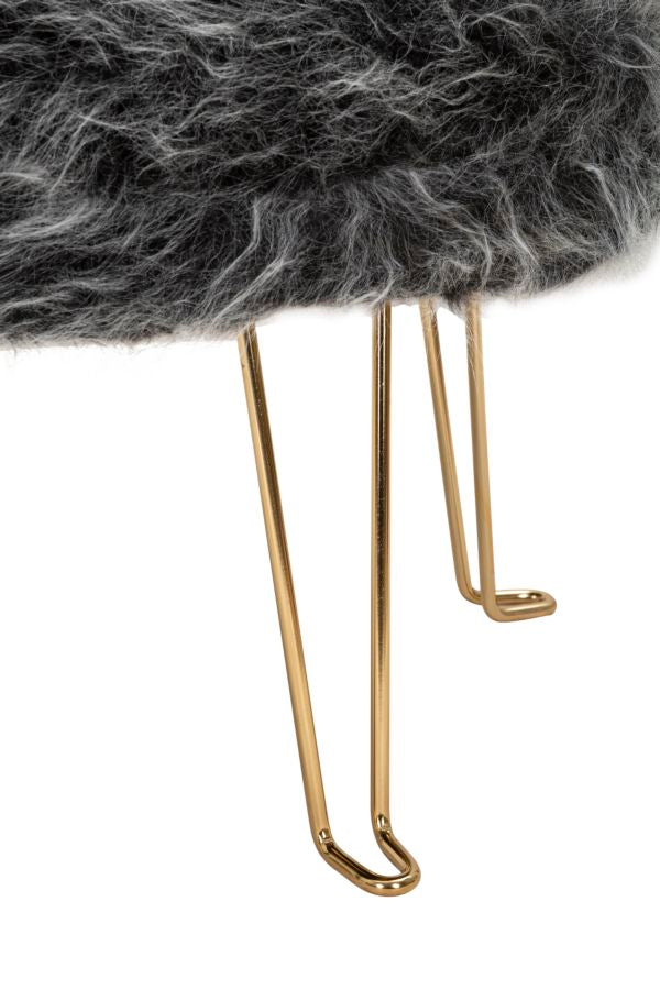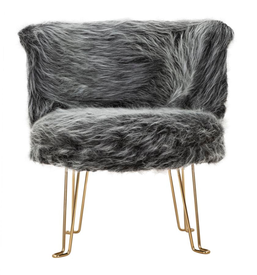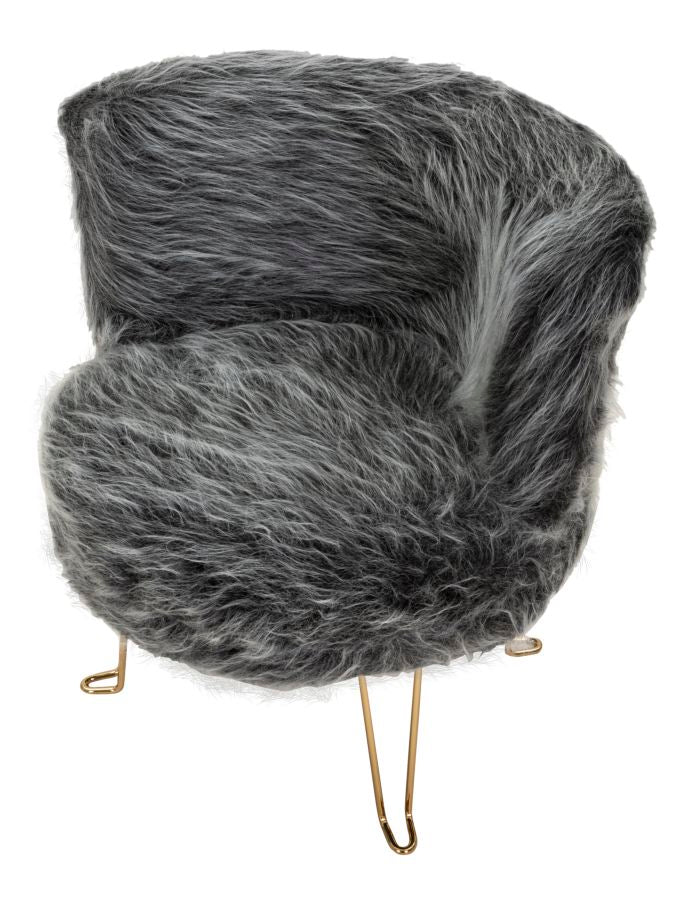 Besonderer Sessel mit linearem Design aus gepolstertem Stoff und mit goldenen Metallbeinen. Lassen Sie sich in eine warme Umarmung einhüllen.