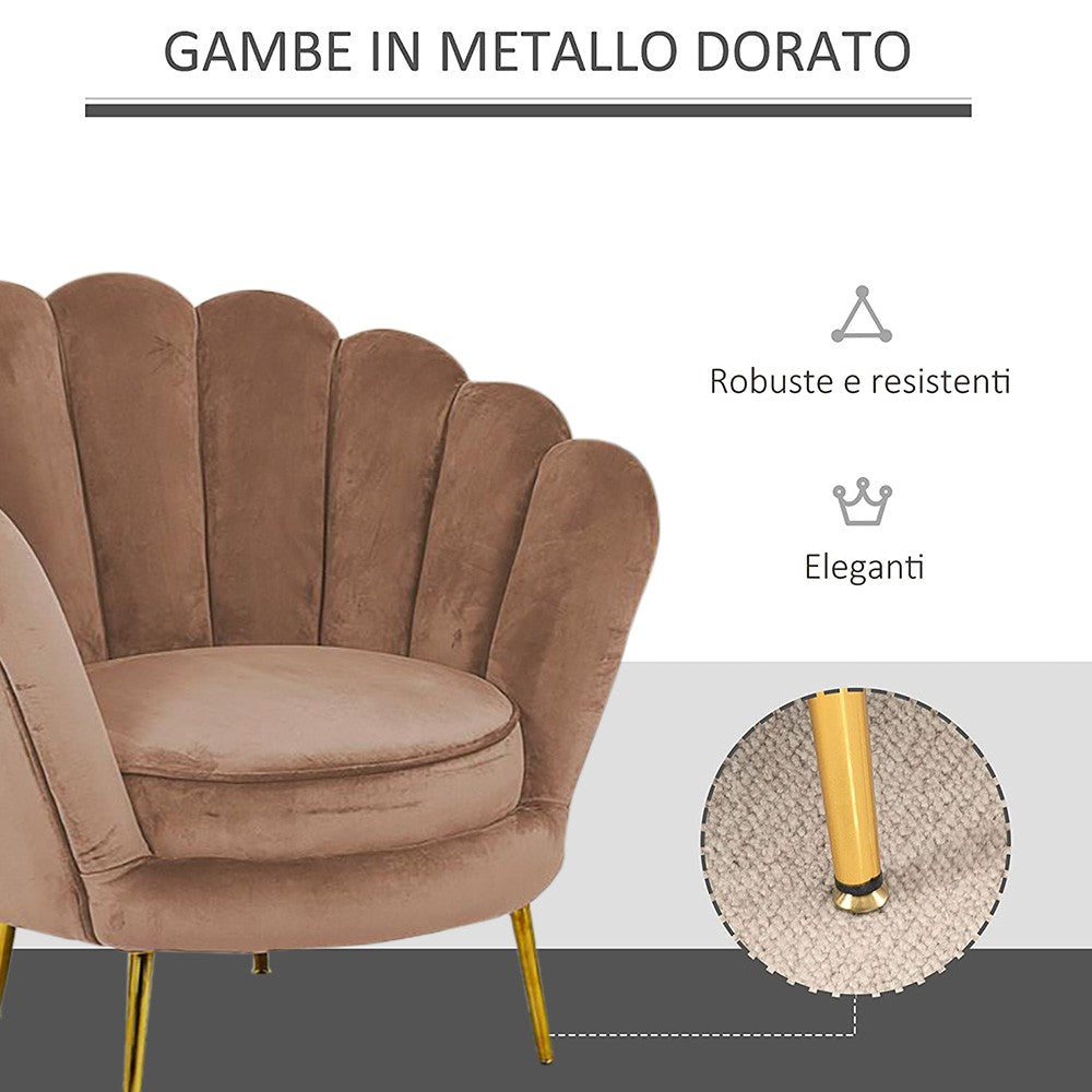 Schalensessel 78 x 73 x 78 cm in Vintage Gold Feet Sofia Brown Velvet