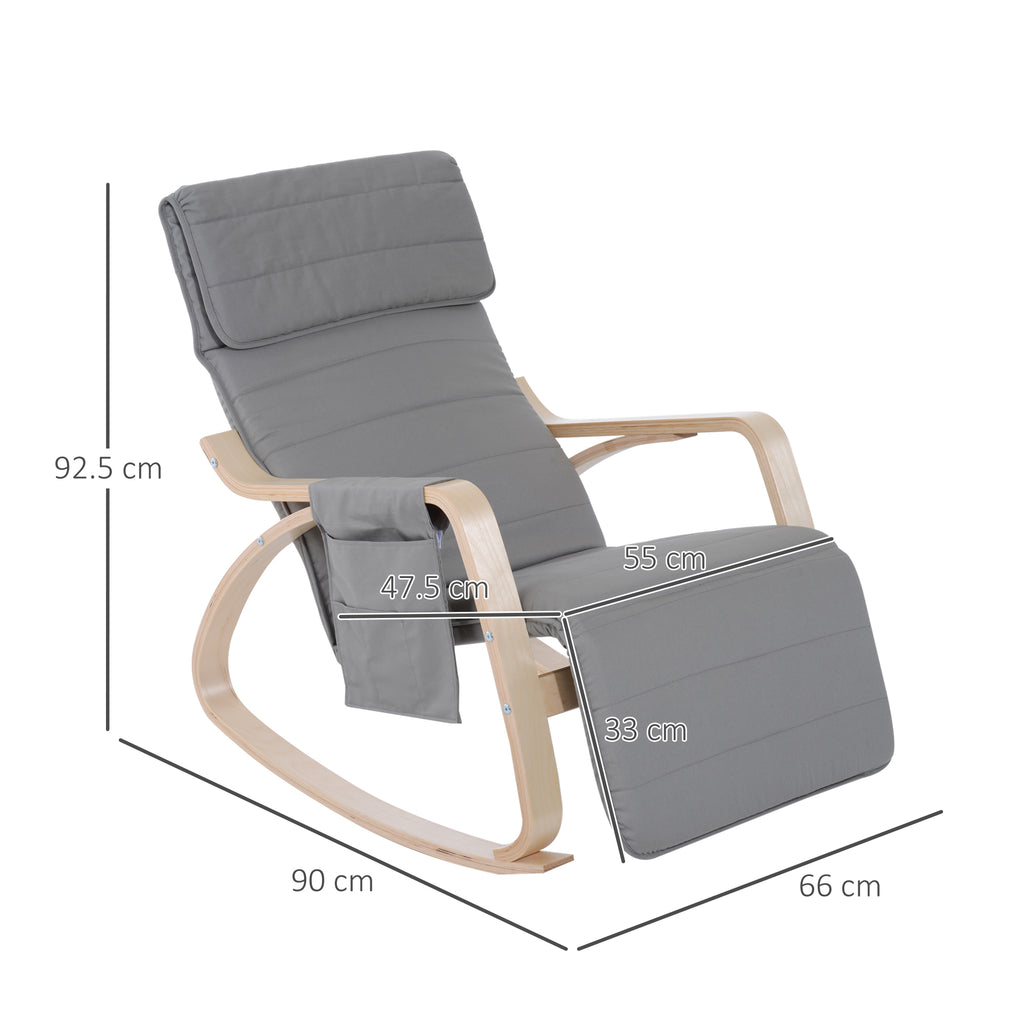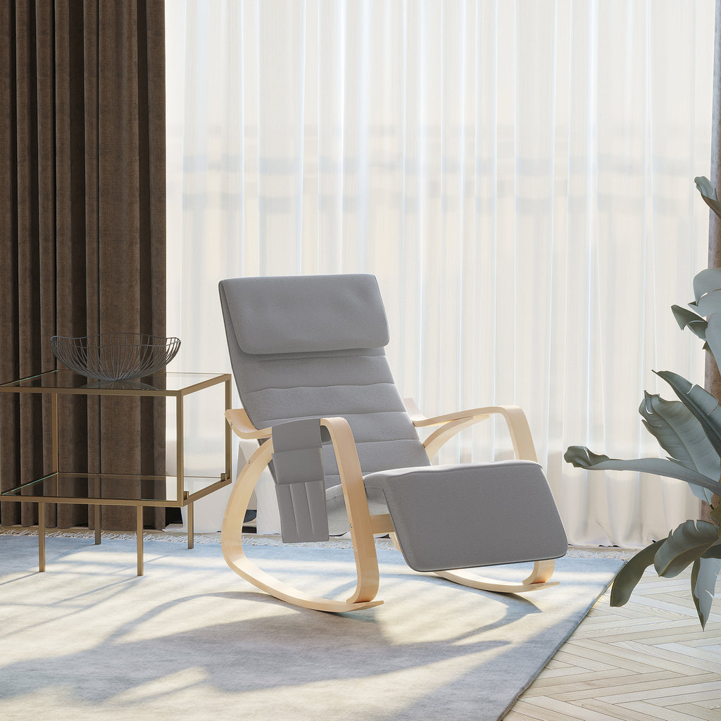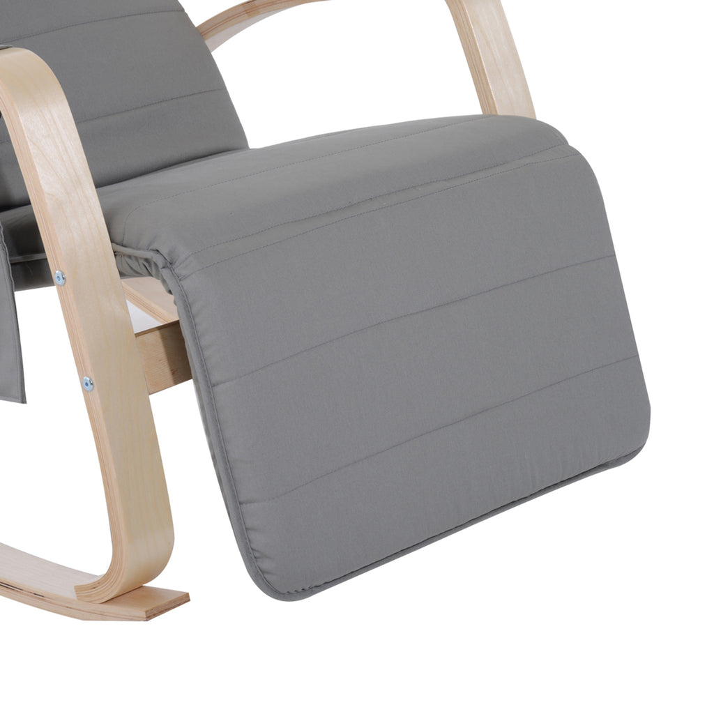 Schaukelsessel mit Beinstütze aus grauem gebogenem Holz