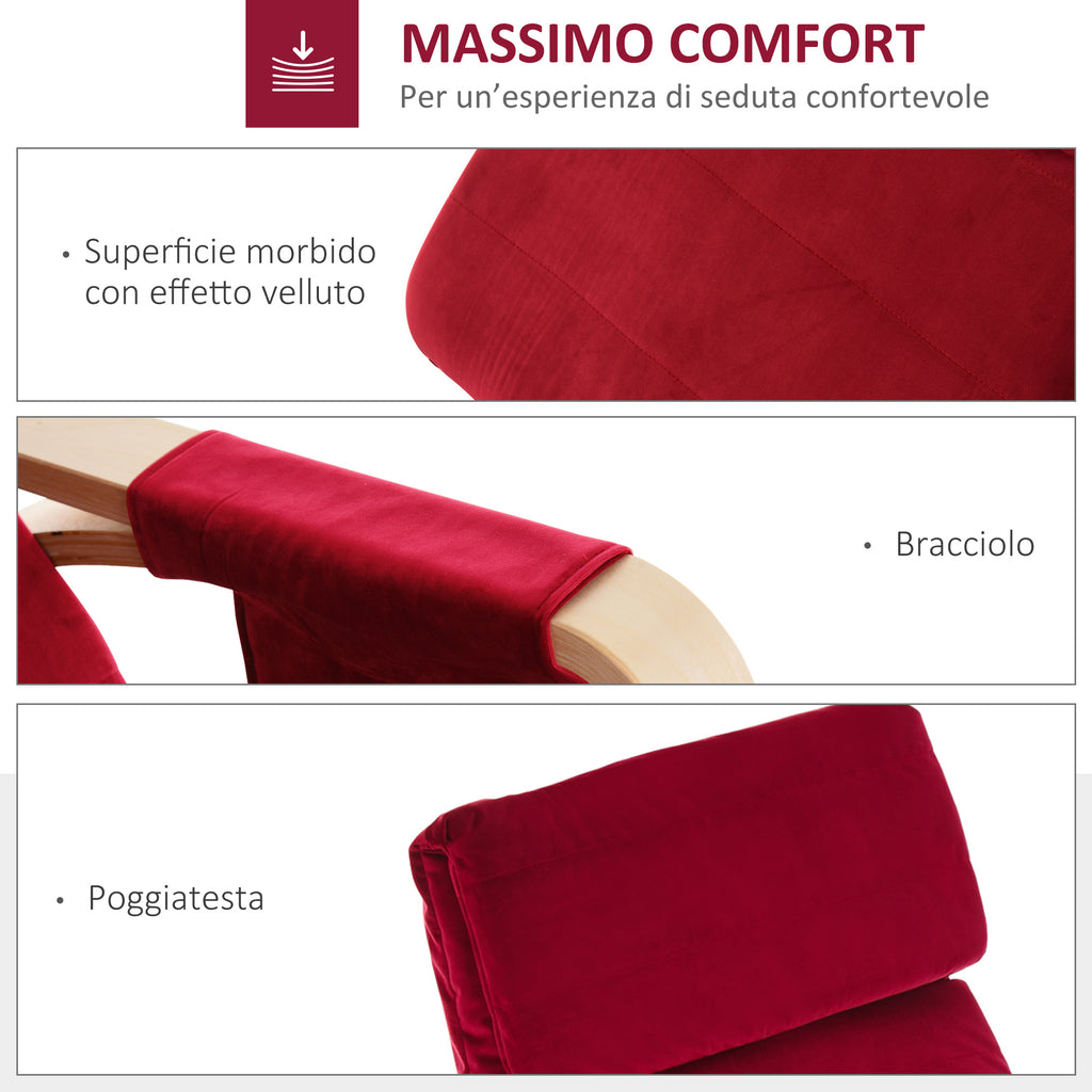 Roter Schaukelsessel mit Beinstütze aus gebogenem Holz