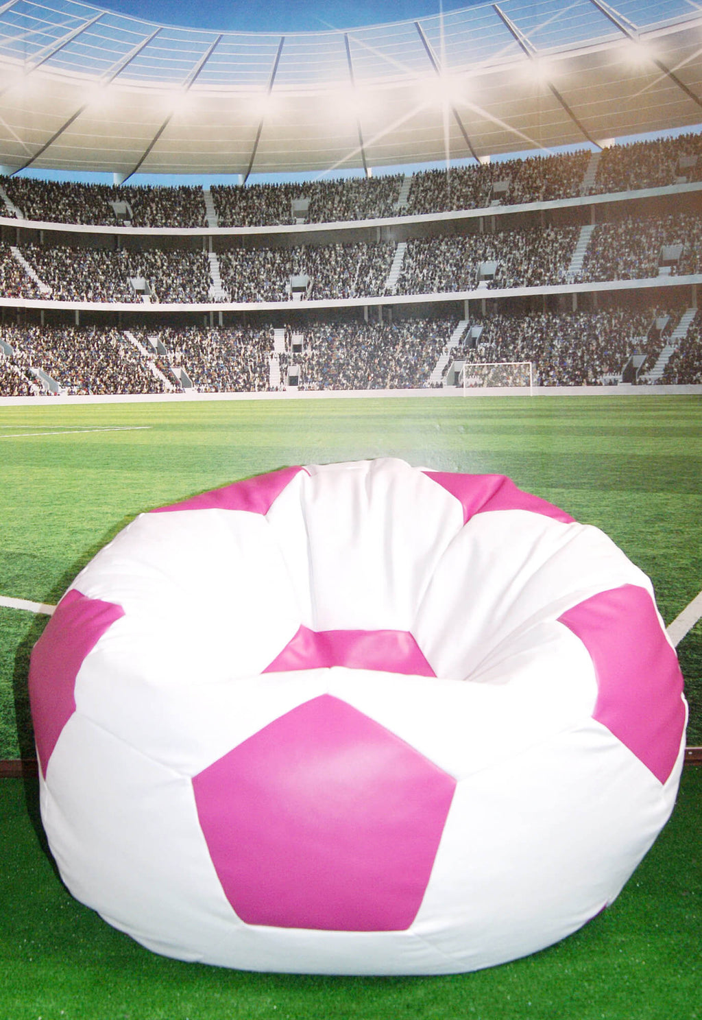 Bean Bag Hocker Ø100 cm aus Baselli Kunstleder Weiß und Rosa Fußball