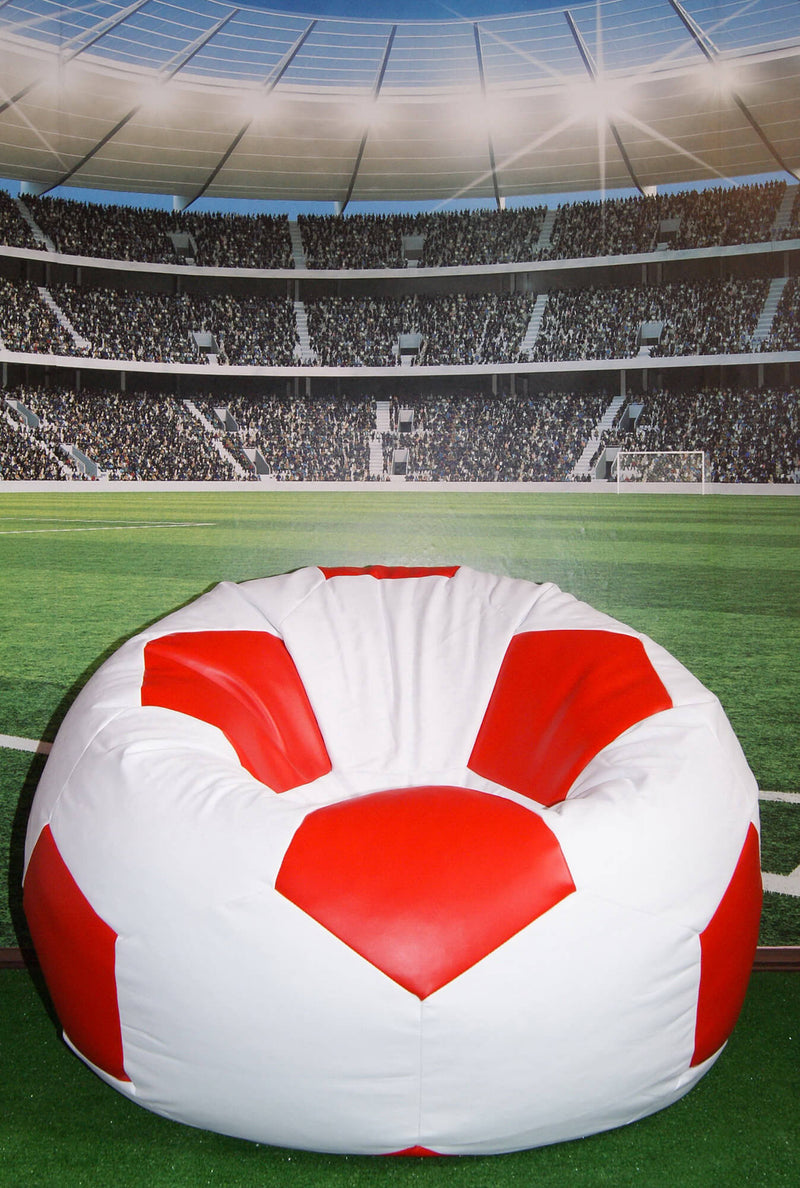 Bean Bag Hocker Ø100 cm aus Baselli Kunstleder Weiß und Roter Fußball