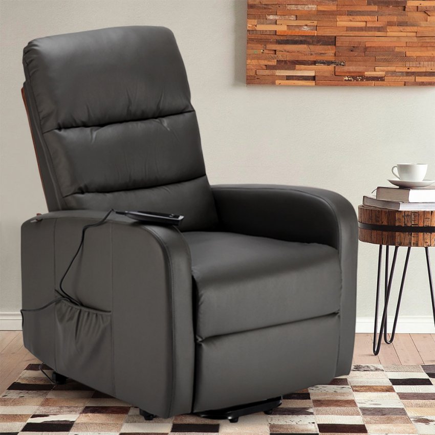 Elektrischer Liftsessel 1 Motor 71x76x116 cm in dunkelgrauem Kunstleder