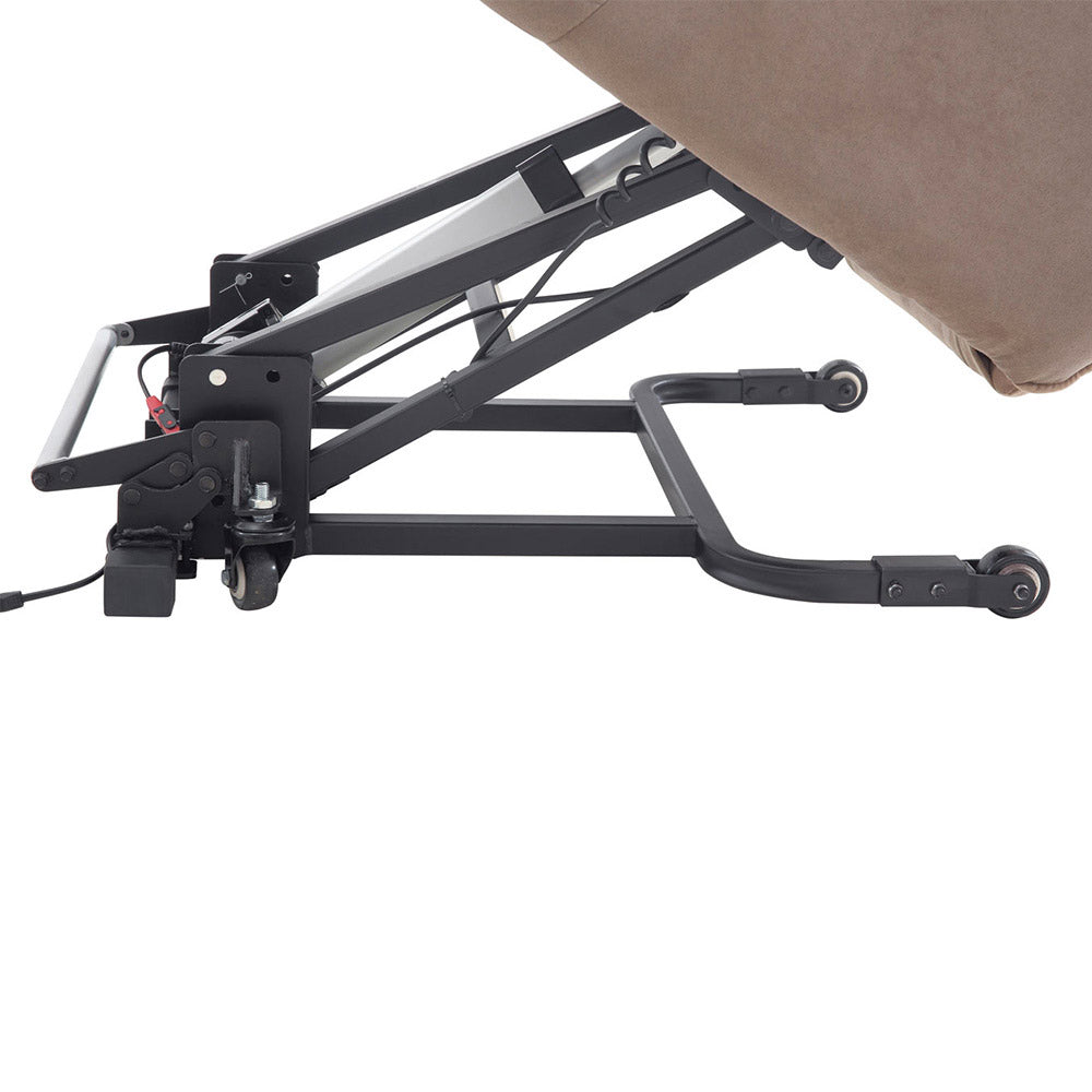 Hebestuhl mit 2 Motoren, der eine unabhängige Bewegung der Rückenlehne und der Fußstütze bietet, ausgestattet mit 2 cm Memory Foam auf der Sitzfläche, der eine korrekte Gewichtsverteilung ermöglicht, indem alle Druckpunkte unterstützt werden, indem die normalerweise unbedeckten, nicht drückenden Bereiche gefüllt werden. Einfach zu bedienen dank der Fernbedienung in der Seitentasche. Er ist mit dem Roller System ausgestattet, einem praktischen Hebemechanismus auf 4 unabhängigen Rädern, der über einen Pedalhebel bedient werden kann, der sich im hinteren Teil des Sessels befindet. Dadurch können Sie den Entspannungsstuhl von einem Raum in einen anderen bewegen, ohne dass die Person vom Stuhl aufstehen muss. Es ist mit 2 Vorderrädern und 2 einziehbaren Hinterrädern ausgestattet. Der Sessel ist mit HOUSTON-Stoff bezogen, der mit einer speziellen Schutzschicht überzogen ist, die vor dem schnellen Eindringen von Flüssigkeiten schützt. Hergestellt aus Buchensperrholz, für maximale Stabilität und Beständigkeit im Laufe der Zeit.