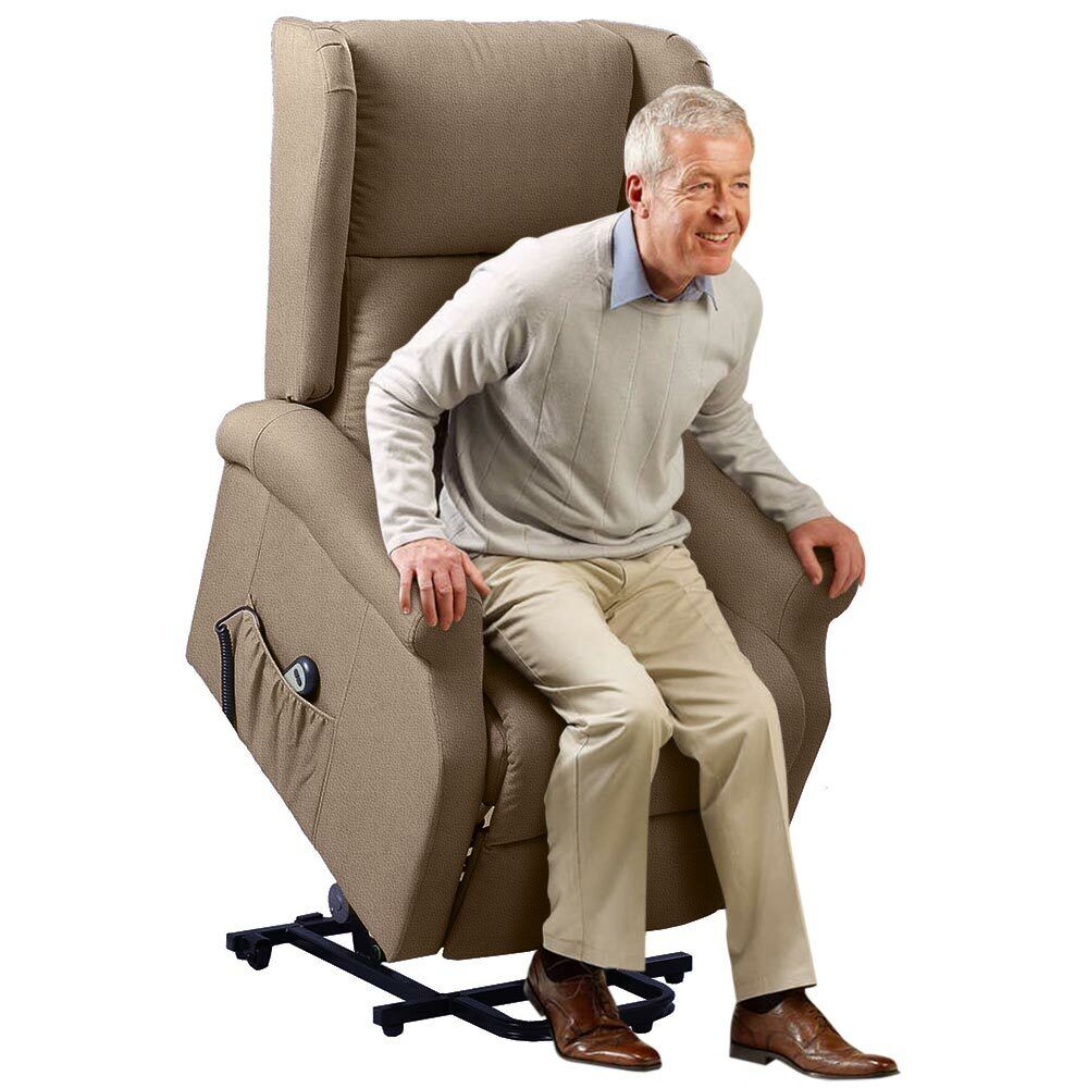 1 x Poltrona Alzapersona Elettrica Motorizzata Reclinabile Ecopelle Tortora Per Anziani