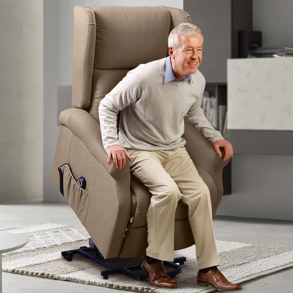 Poltrona Alzapersona Elettrica 1 Mortore Reclinabile Ecopelle Tortora Anziani
