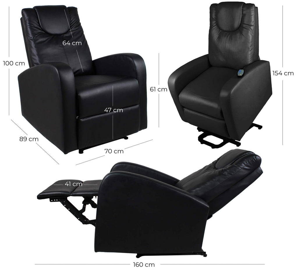 1 Motorischer Elektro-Hebestuhl mit Vibromassage aus Kunstleder 70x100x89 cm Vandi Black
