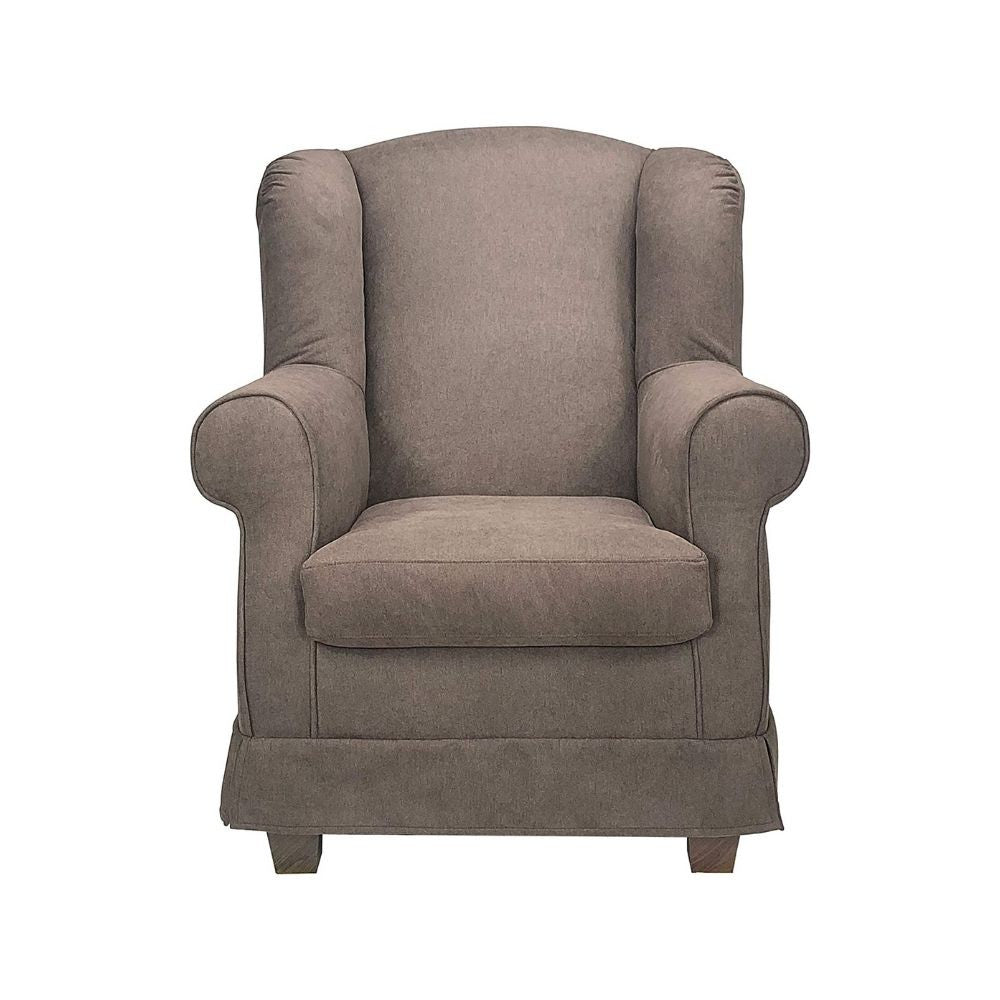 Poltrona in tessuto tortora Bergere. La struttura è in legno massello di abete e l’imbottitura è in poliuretano espanso. Prodotto sfoderabile e lavabile.