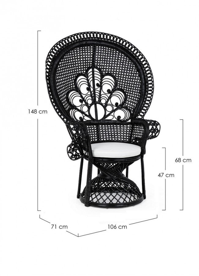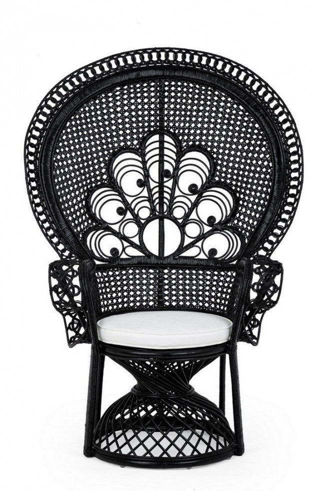Peacock Sessel mit Kissen mit schwarzem Naturfaserkissen