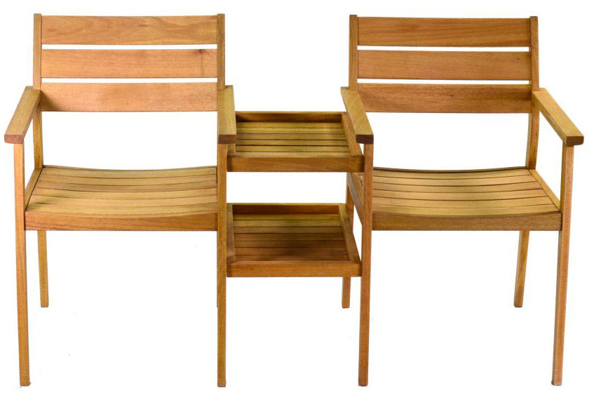 2-Sitzer-Gartensessel mit zentralem Tisch 2 Regale aus Eukalyptusholz.