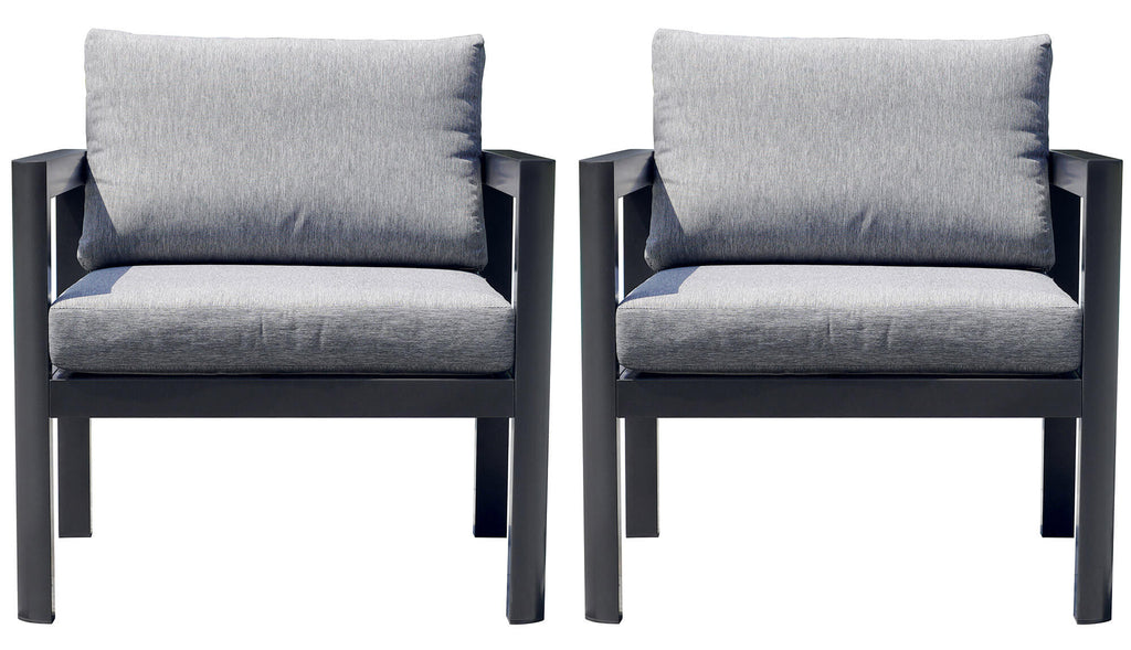 Set mit 2 Gartensesseln 70 x 75 x 60 cm aus grauem Aluminium mit grauen Kissen