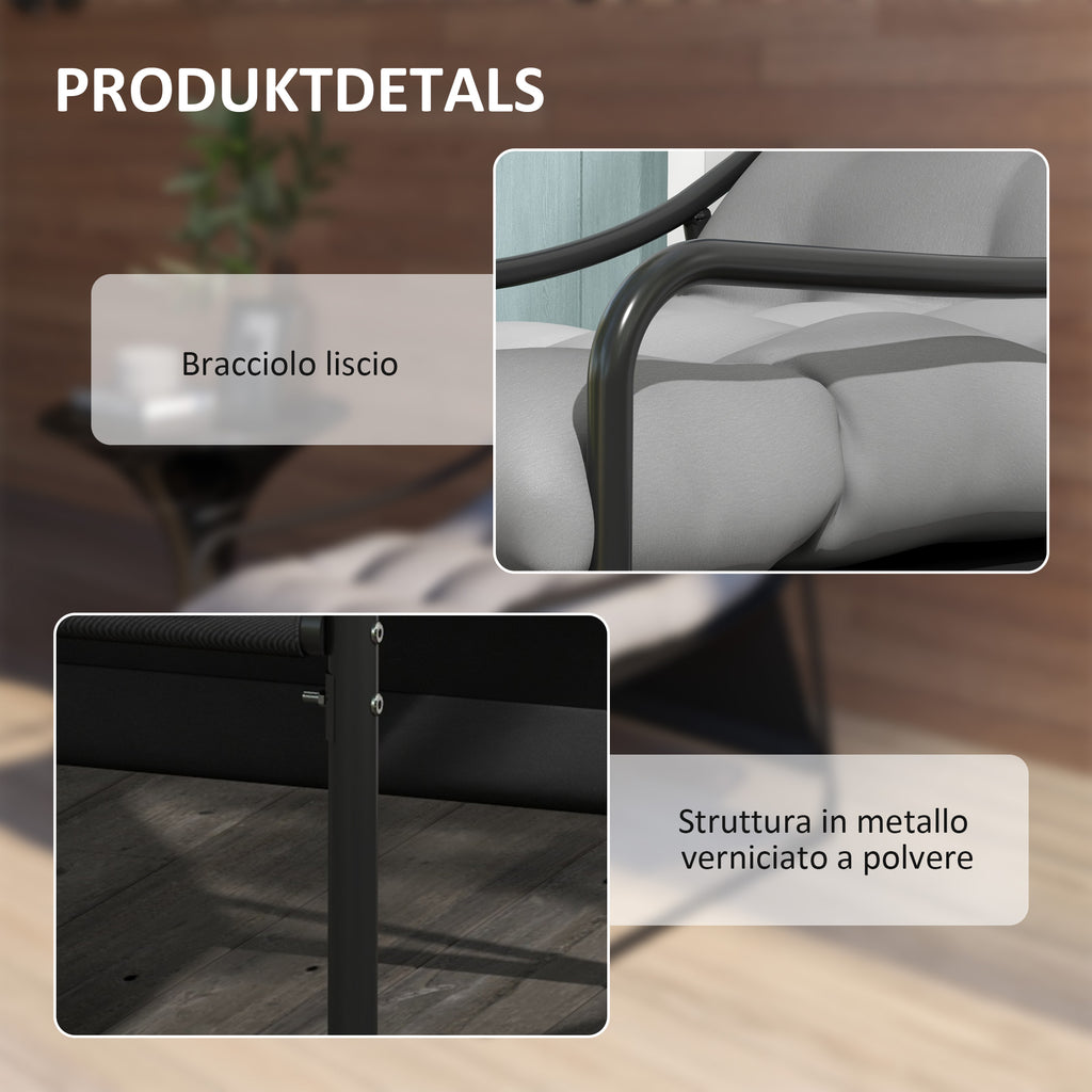 Poltrona da Giardino con Cuscino Imbottito 62x110x88 cm in Acciaio e Poliestere Grigia e Nera
