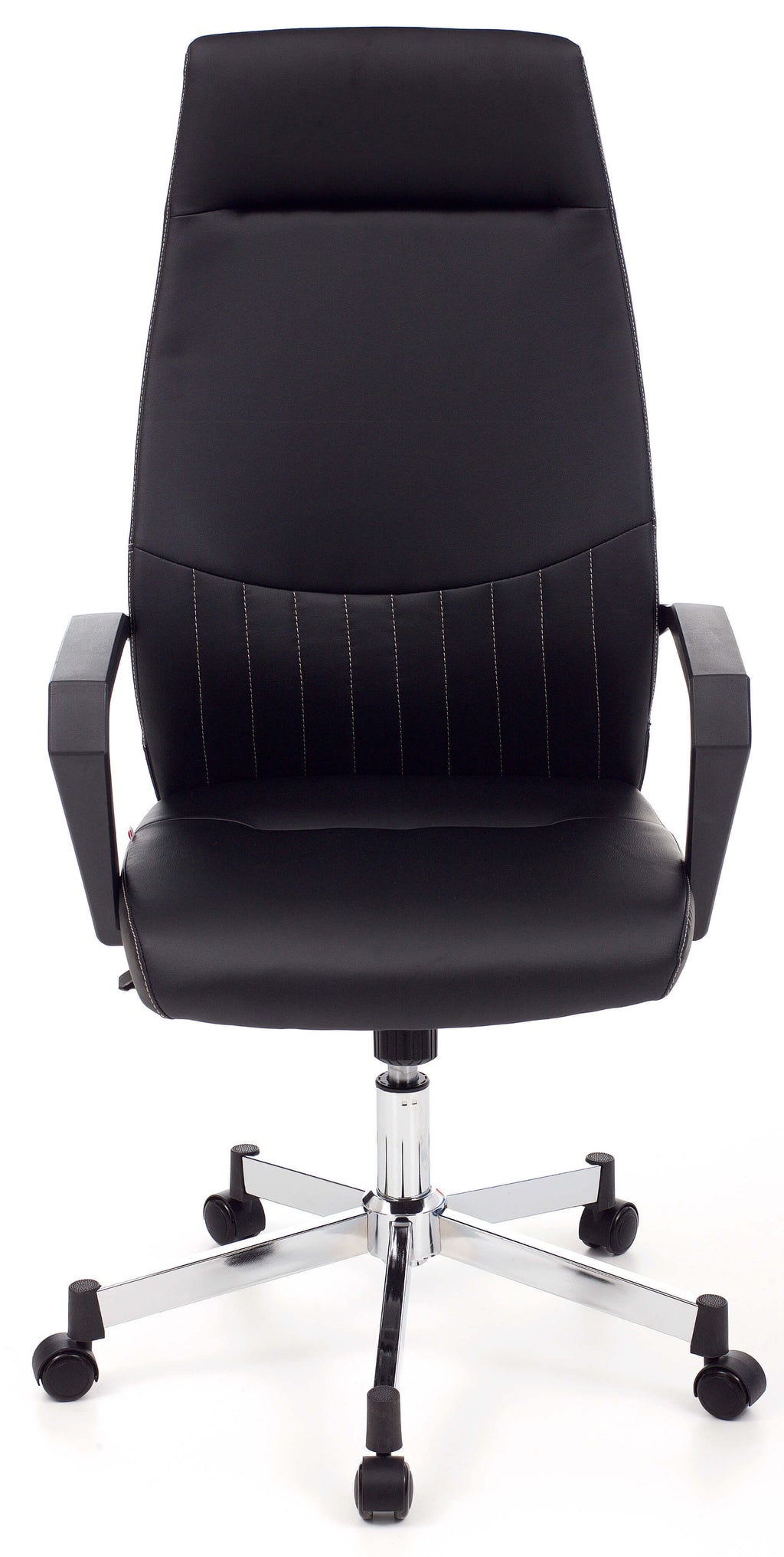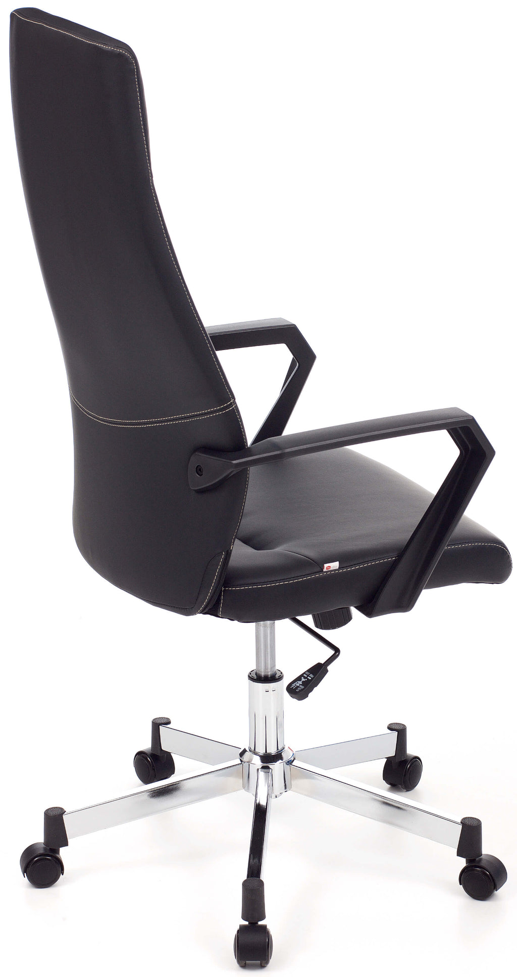 Sitz und Rückenlehne mit Kunstleder bezogen.