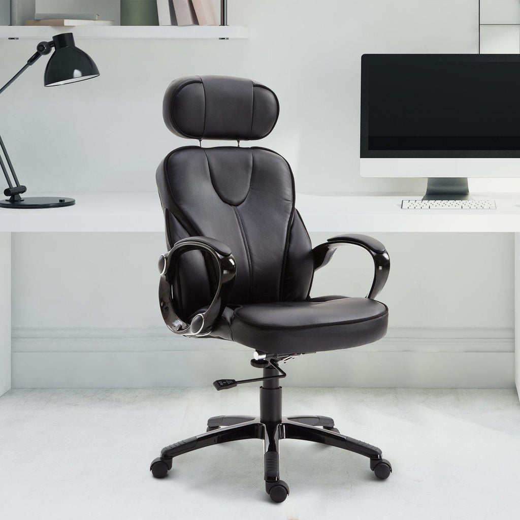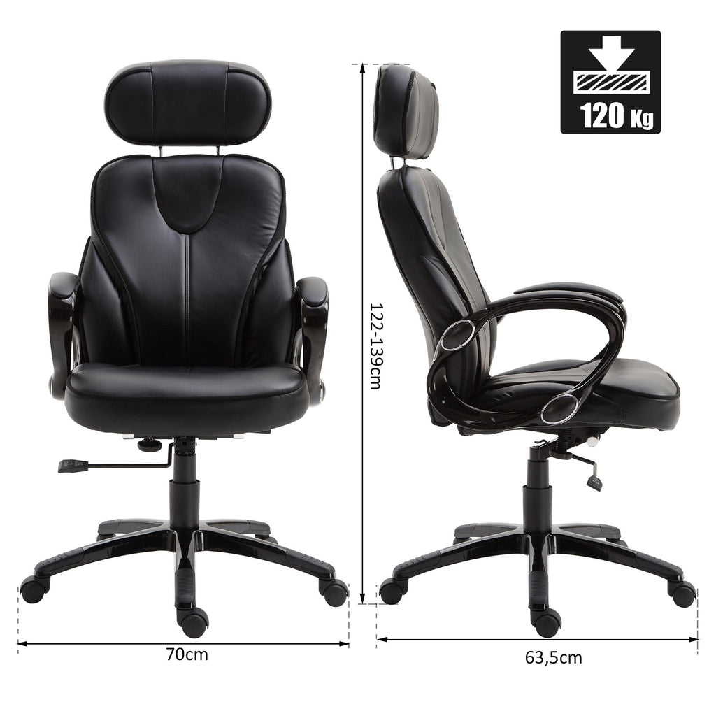 Chefsessel mit Kopfstütze aus schwarzem Kunstleder