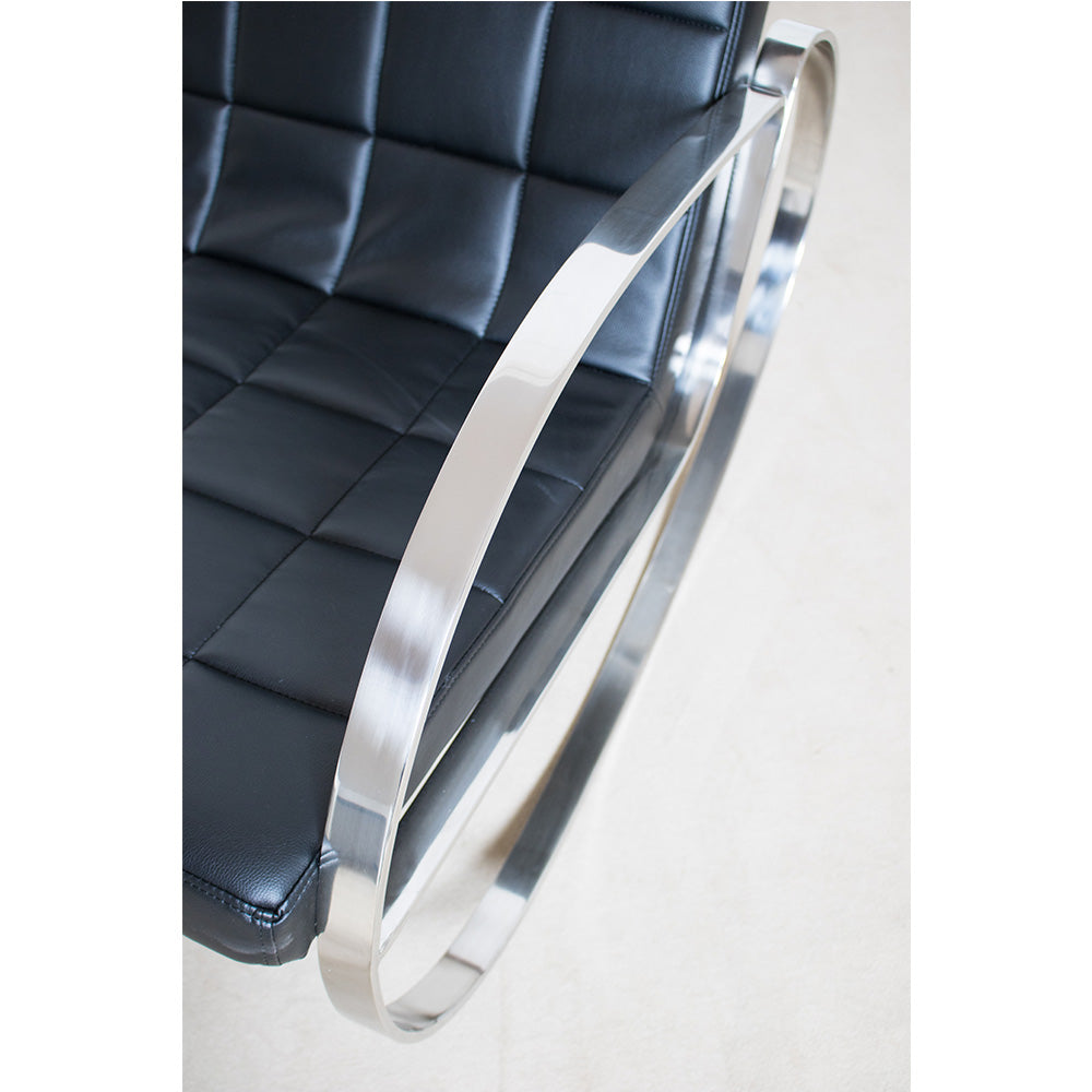 Sessel Domitilla aus verchromtem Stahl, Polsterung aus schwarzem Kunstleder